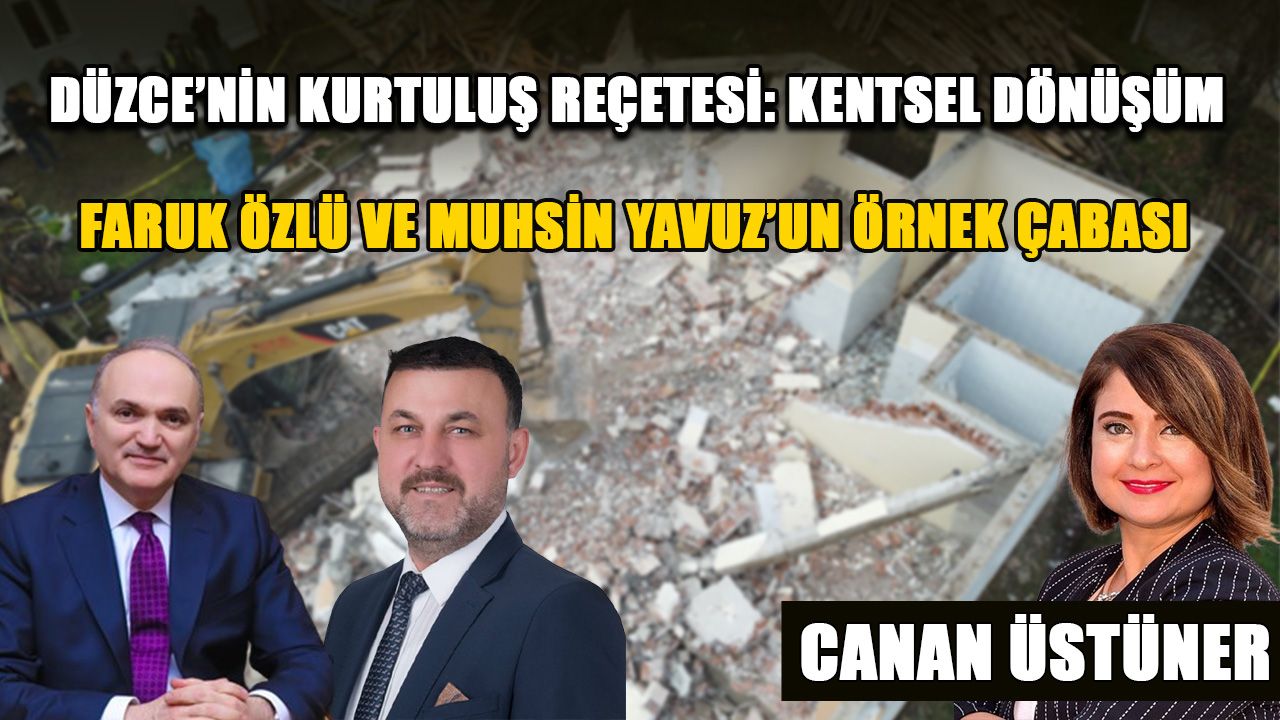 Yatay mimariye yönelik hassasiyeti bilinen ve dönüşüm çalışmalarının hızlanmasına bizzat belediye bünyesinde kurduğu çalışma ekibiyle katkı sağlayan Düzce Belediye Başkanı Dr. Faruk Özlü, geçtiğimiz kasım ayında, Düzce’de kentsel dönüşüm çalışmaları hakkında şu ifadeleri kullanmıştı: “Depremler yaşamış bir kent olarak; özellikle yüksek katlı binalar konusunda büyük hassasiyet göstermeye devam ediyoruz. Yüksek katlı binalara müsaade etmiyoruz. Bugün Düzce'de maksimum kat yüksekliği zemin artı dörttür. Bu süreçte çok önemli bir projeye daha imza attık. Düzce için “Kentsel Dönüşüm Strateji Belgesini” hazırladık. Dönüşüme tabi tutacağımız 8 bölgeyi belirledik. Bu belgeyi hazırlarken; 6306 sayılı Afet Riski Altındaki Alanların Dönüştürülmesi Hakkında Kanun kapsamında Düzce’de risk teşkil eden alanların belirledik. Belirlediğimiz nu alanlara, kentsel dönüşüm için öncelik vereceğiz. Depremin bilincinde olmak, bu felaketlere karşı her an hazır bulunmak; sorumluluk sahibi her kurumun başta gelen görevlerinden biridir. Afet bilincinin yaygınlaştırılması için atılacak her adıma destek olmaya devam edeceğiz.”