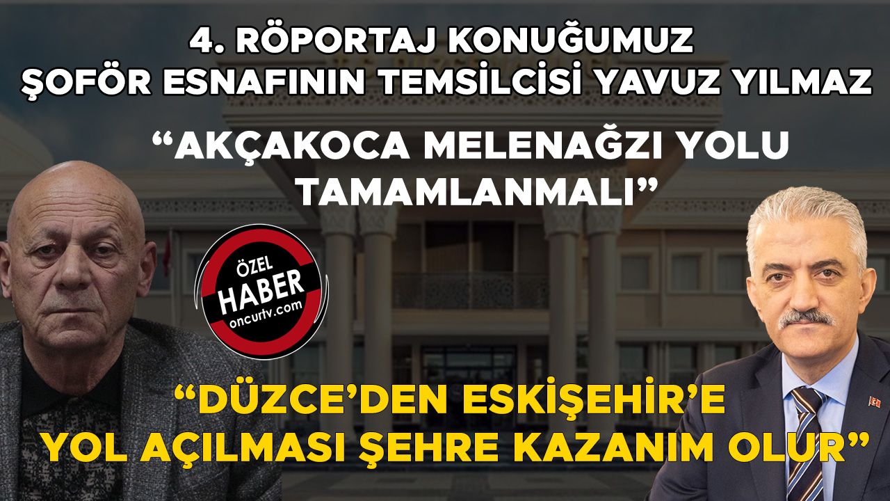 Düzce Valisi Mehmet Makas’tan Düzce’nin beklentilerini toplumun farklı kesimlerine sormak amacıyla röportaj serisine başlayan Öncü Haber ekibi, röportaj serisinin dördüncü bölümünde Düzce’de şoför esnafını temsil eden Düzce Şoförler ve Otomobilciler Esnaf Odası Başkanı Yavuz Yılmaz’ın görüşlerini aldı. Öncü Haber’den Zeki Aşıkoğlu ve Tuğba Aksoy’a açıklamalarda bulunan Yılmaz, Akçakoca Melenağzı yolunun tamamlanması gerektiğini belirtti. Yayla yollarının da tamamlanmasının Düzce’nin turizmi için önem taşıdığına değinen Yılmaz, Düzce’den Eskişehir’e yol açılmasının kente fayda sağlayacağını kaydetti.