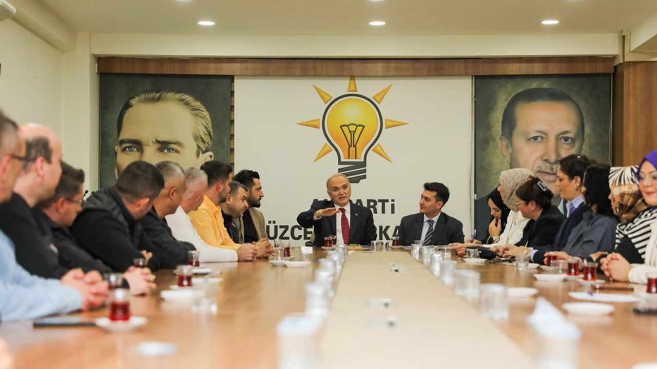 Düzce Belediye Başkanı Dr. Faruk Özlü, AK Parti Merkez İlçe Teşkilatı’nın haftalık Yönetim Kurulu toplantısına konuk oldu. Merkez İlçe Başkanı Buğra Alp Kocaman başkanlığında gerçekleştirilen toplantıda teşkilat yöneticileri ile bir araya gelen Başkan Özlü, Cedidiye Kent Meydanı Projesi ve içme suyu yatırımları hakkında bir sunum yaptı.