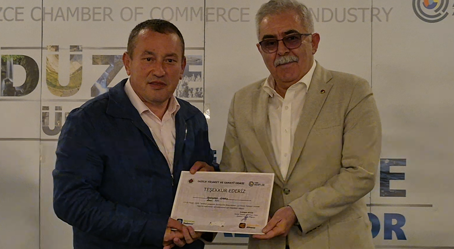Belge töreni öncesinde konuşan Düzce Ticaret ve Sanayi Odası Başkanı Erdoğan Bıyık, fuarı ve Düzce standını değerlendirdi.