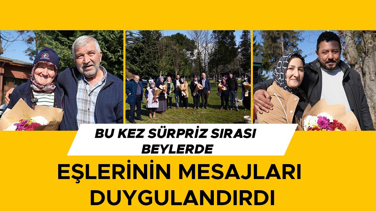 Millet Bahçesi’nde yeşil alan bakımı için görevde olan Park ve Bahçeler Müdürlüğü'nde görev yapan kadınlar, hiç beklemedikleri bir anda, LED ekranda eşlerinin mesajlarının yer aldığı videoyu gördüler. Eşlerinin duygusal ve içten sözleriyle büyük bir şaşkınlık yaşayan kadınların ilk tepkisi mutluluk gözyaşları oldu. Ardından ellerinde çiçeklerle karşılarında eşlerini gören kadınlar, bu anlamlı sürprizle daha da mutlu oldu. Eşlerinin Kadınlar Günü’nü kutlayarak çiçek takdim eden kocalar, sevgilerini ve takdirlerini dile getirmeyi de ihmal etmedi. Kadınlar ise hem eşlerine, hem de Düzce Belediyesi Basın Yayın ve Halkla İlişkiler Müdürlüğü ekibine teşekkürlerini ilettiler.