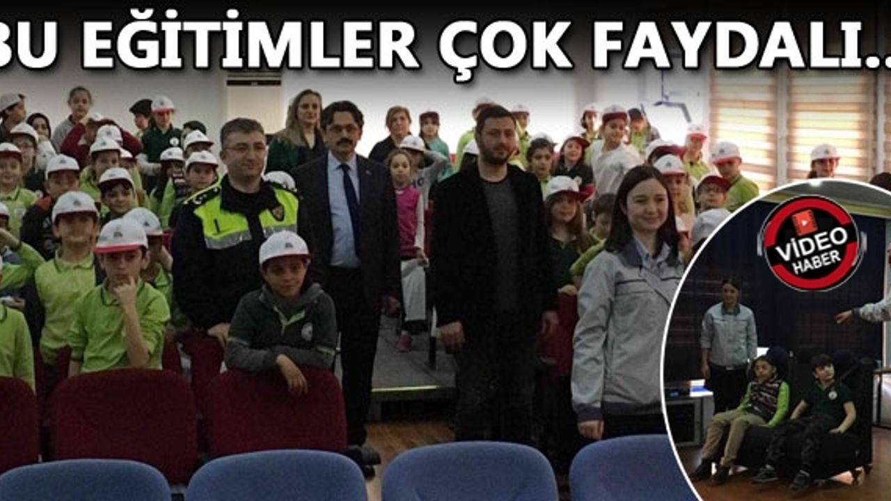 İl Emniyet Müdürlüğü Trafik Şube Müdürü İsmail Ceran ve Düzce Belediye Başkan Yardımcısı Özgür Sağlam'ın da katıldığı programda, üçüncü sınıf öğrencilerine araçlarda emniyet kemeri kullanmanın önemi ve trafik kuralları konusunda bilgi verildi.