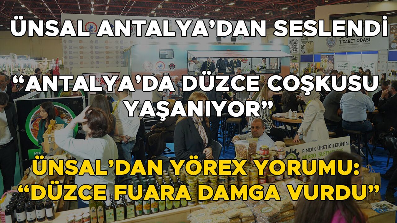 Düzce standının konumu ve ürün çeşitliliği sayesinde fuarın en görünür alanlarından biri olduğuna dikkat çeken Ünsal, “YÖREX’in Türkiye’nin dört bir yanından gelen ürünlerin tanıtımı açısından büyük önem taşıdığını belirterek, “Düzce yine bugün YÖREX’te, Antalya’da birçok ürünüyle, birçok varlığıyla ve hepsinden önemlisi konuşlandığı yer itibariyle gerçekten en güzel yerde. YÖREX fuarına giren herkesin Düzce’yi görmemesi, bilmemesi, fark etmemesi mümkün değil.
