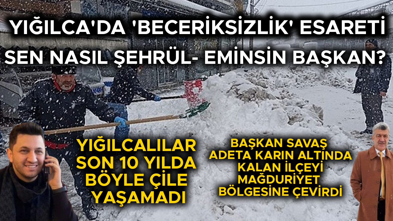 Düzce'nin merkeze en uzak ilçesi Yığılca iş bilmezlik ve beceriksizlik yüzünden kar esareti yaşıyor. Sadece köy yolları değil merkezdeki tüm cadde ve sokakları kardan geçit vermeyen ilçede, günlerdir elektrik olmaması mağduriyeti katlıyor. Evlerinden çıkamayan ve soğukla mücadele eden aralarında eski Belediye Başkanı Muzaffer Yiğit'in de olduğu binlerce vatandaş, Yığılca Belediye Başkanı Selami Savaş'ın koordinasyonu sağlayamamasına ve plansızlığına isyan ediyor. Yoğun tepkiler üzerine açıklama yapmak zorunda kalan Başkan Savaş ise 'Bu işin altından kalkamadım.' deme cesaretini gösteremeyip kar sınavını geçememesinin gerekçesi olarak tuhaf bir şekilde 10 yıl öncesini hatırlatmaya kalkıyor. Yolları açamayan, SEDAŞ'ın çalışmalarını hızlandıramayan başkan, bir ilçeyi mağduriyet bölgesine çevirirken, her şeyin farkında olan Yığılcalılar ise kenti kara kışa teslim eden Başkan Savaş'ın işin ehli olup olmadığını bir kez daha tartışıyor.