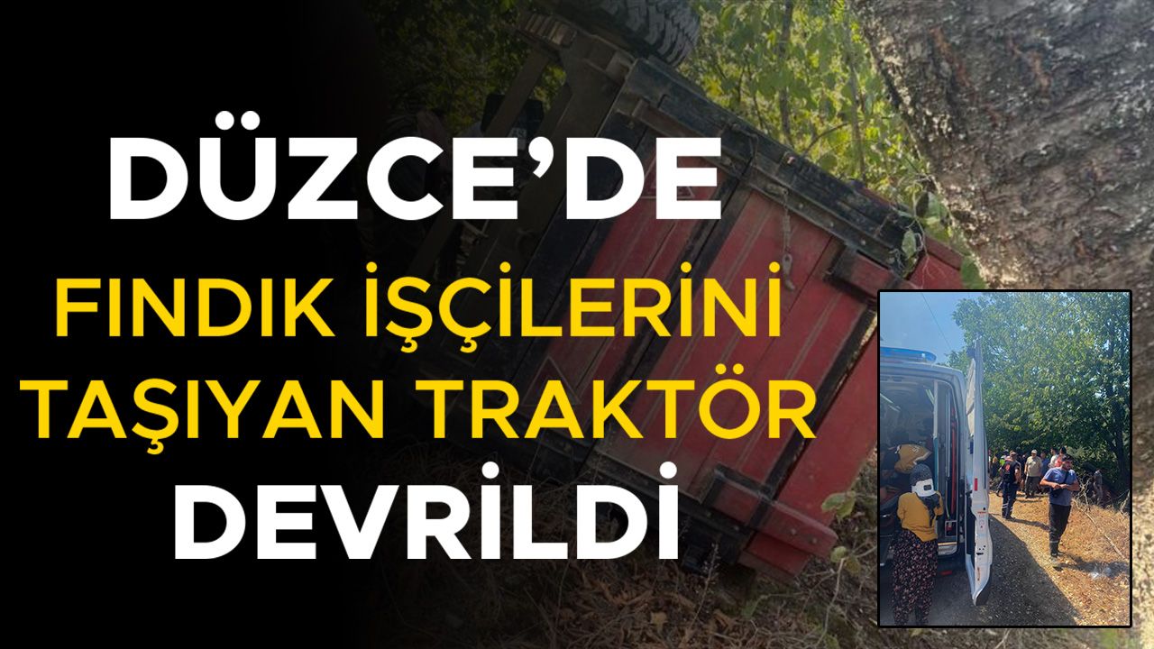 Kaza Cumayeri Esentepe köyü mevkiinde meydana geldi. Alınan bilgilere göre fındık işçilerini taşıyan traktör, engebeli yolda sürücüsünün direksiyon hakimiyetini kaybetmesi sonucu fındık bahçesine devrildi.