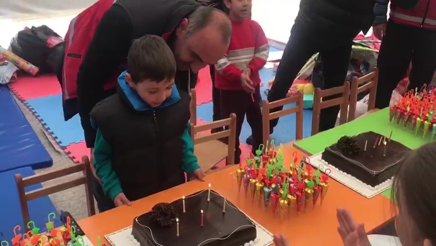 Kahramanmaraş merkezli meydana gelen deprem sonrasında Düzce’den Gaziantep’e giden psikososyal destek ekipleri, oluşturulan oyun alanlarında çocukların normale dönmesini sağlıyorlar. 6 yaşına giren Eymen’e sürpriz doğum günü yapıldı.