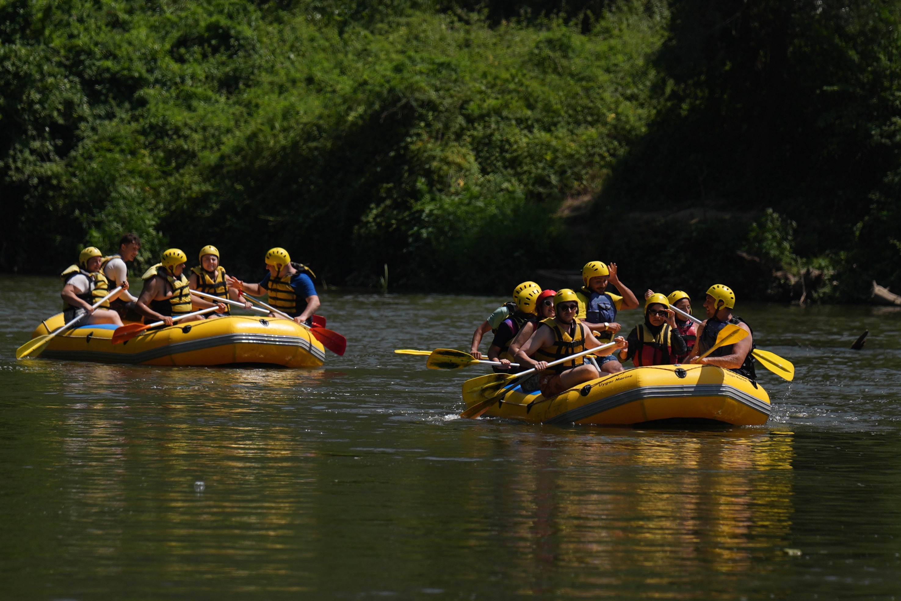 Düzce'nin Cumayeri ilçesinde macera tutkunları, Melen Çayı'nda rafting yaparak eğlenceli vakit geçirdi.