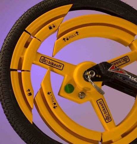 Tasarımcılar bisikletinizin tekerleğini bile düşünmüşler. Resimde gördüğünüz bu bisiklet tekerleğini benzerlerinden ayıran yanı ise kilitlendiğinde tekerin kullanılamaz hale gelmesi ve bir işlev görmemesi.