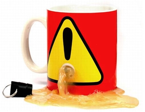 Bu tasarım harikası kupa bardak da ofiste çalışanlara yönelik geliştirildi. Siz masabaşında değilken bardağınıza uzanan üçüncü kişilerin ellerini uzak tutmayı amaçlayan bu tasarım şu şekilde çalışıyor: Bardağın ortasında bir delik bulunuyor ve bir tıpaçla bu delik kapatılıyor. Eğer bir başkası gelip bu bardağı eline almaya çalışırsa tıpaça bağlı ip zorlanacağından tıpaç otomatik olarak yerinden çıkacak ve içerisinde ne varsa olduğu gibi dışarı akacaktır.