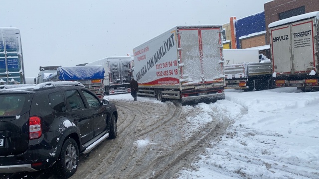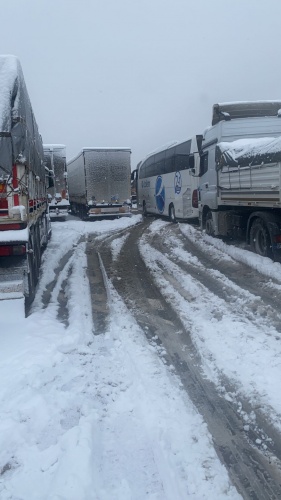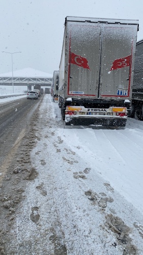 Etkisini sürdüren yer yer kuvvetli kar yağışı nedeniyle TEM Otoyolu Düzce Kesiminde binlerce tır mahsur kaldı. TEM Otoyolu Kaynaşlı Üçköprü mevkiinde bulunan Türsan Dinlenme tesisleri Tırlarla dolup taştı.