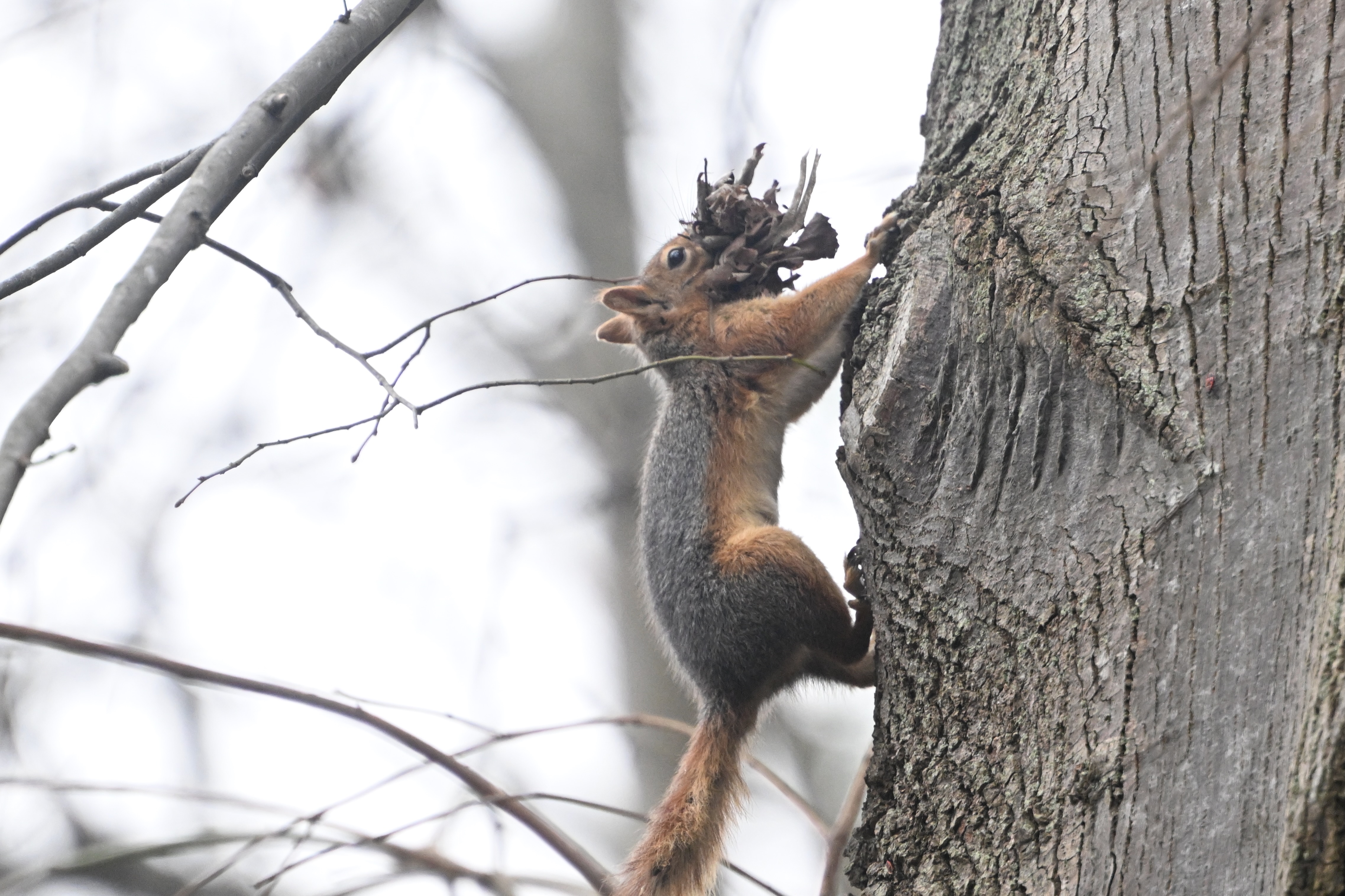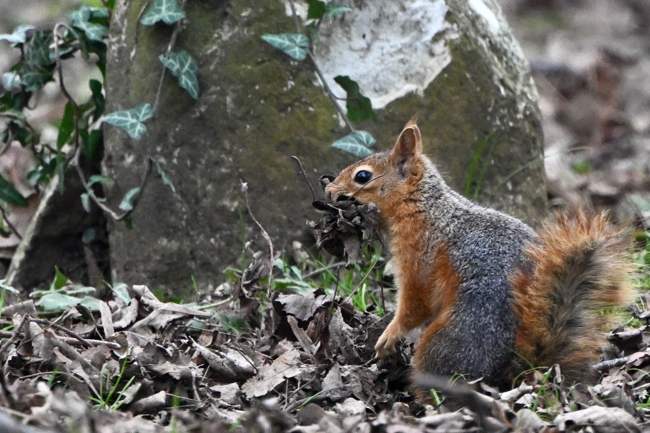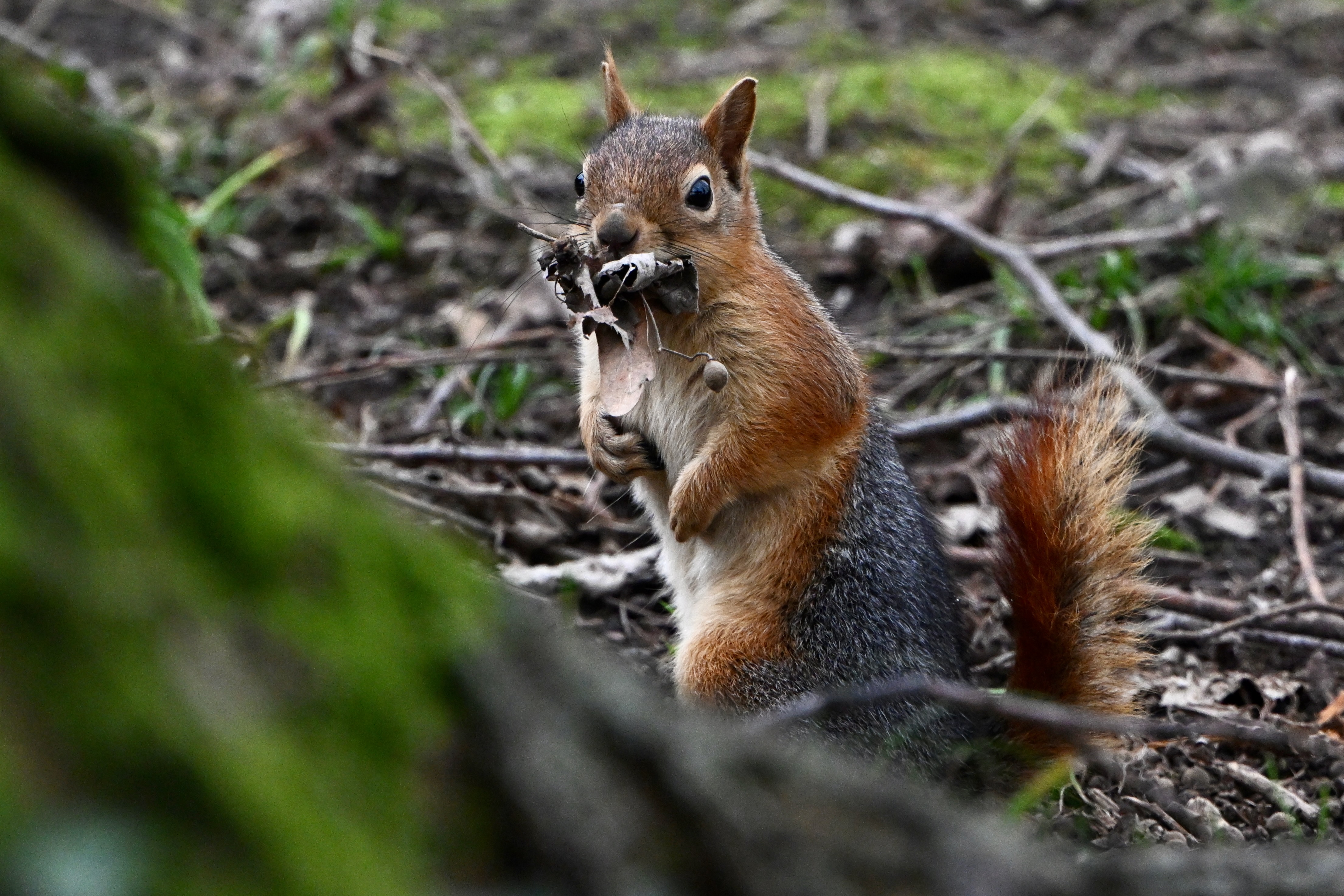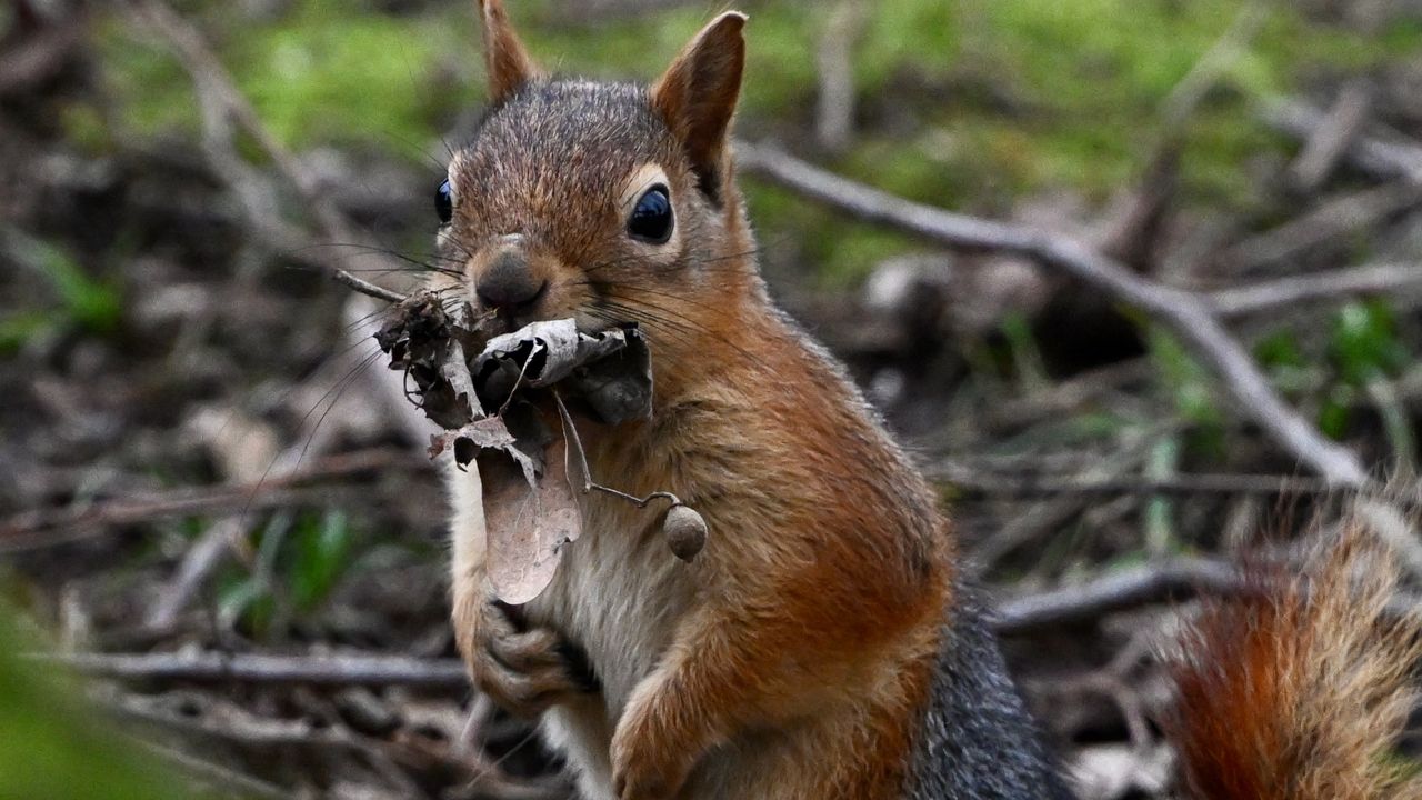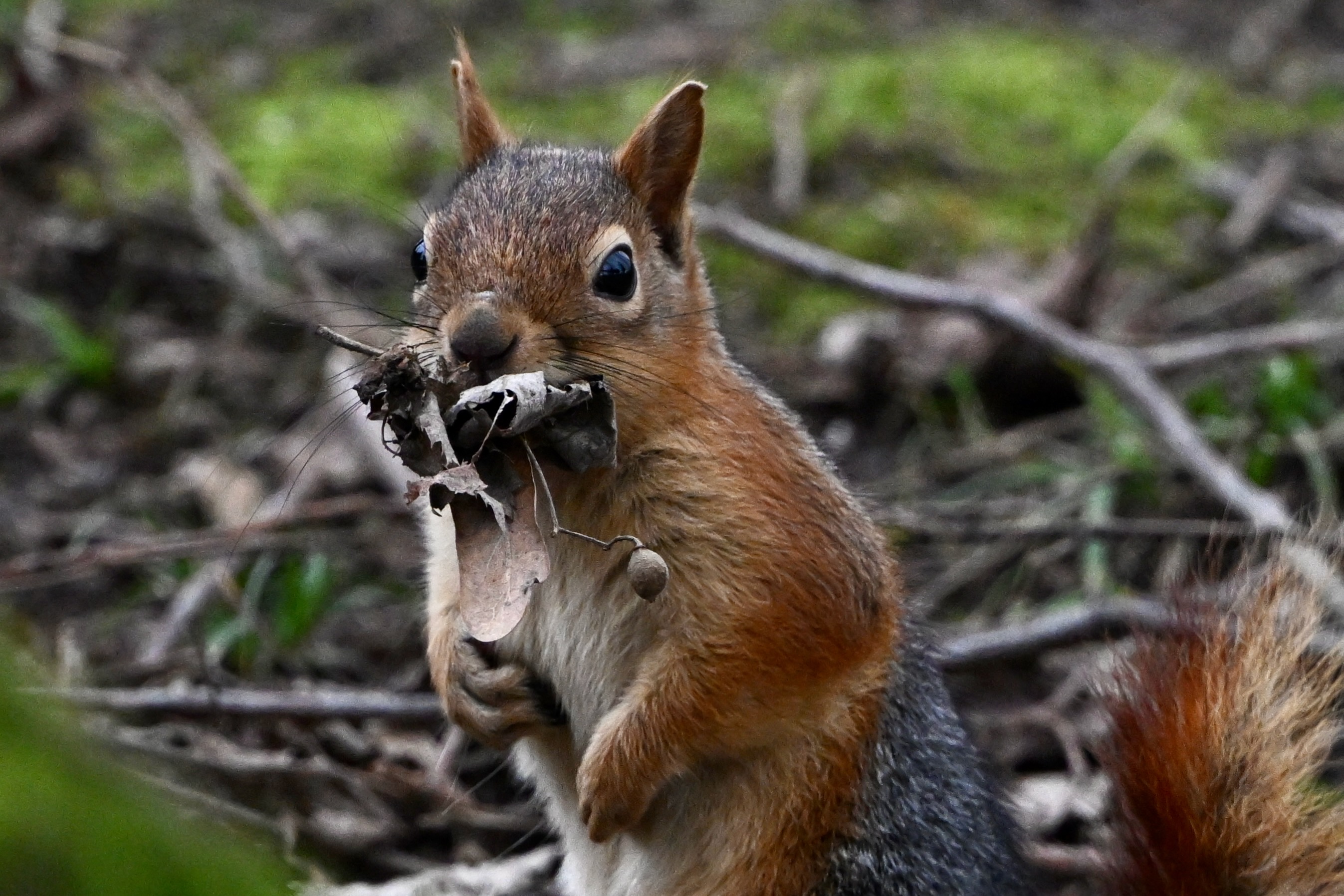 Düzce'nin Akçakoca ilçesinde sincabın yerden topladığı ağaç yapraklarıyla yuva yapmaya çalışması görüntülendi.