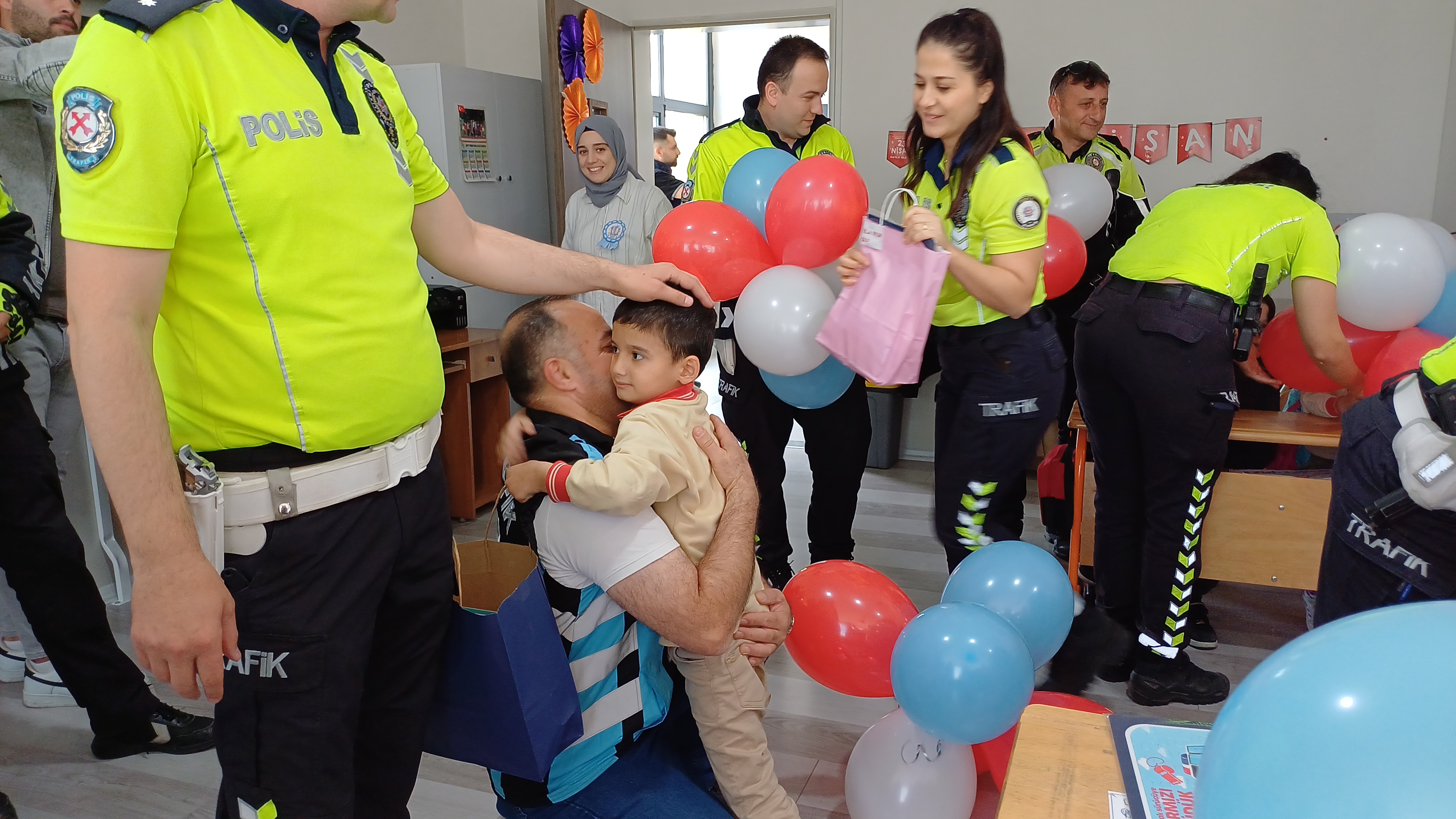 Düzce Şehit Teğmen Uğur Altan İlkokulu Özel Eğitim Anaokulunda eğitim gören özel gereksinimli çocukların sosyal medya paylaşımı polisleri harekete geçirdi. Ekipler, sirenlerle girdikleri okulun özel eğitim anasınıfındaki çocuklara sürpriz yaptı.