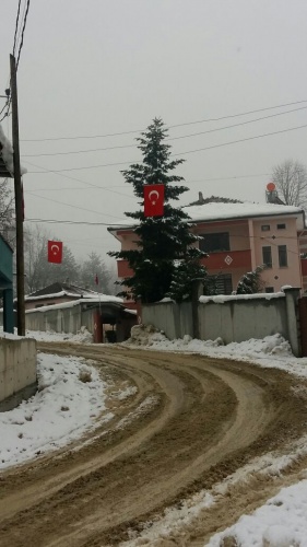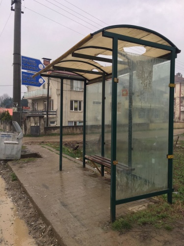 Cumhuriyet mahallesi Cumhuriyet ilk öğretim okulunun girişindeki otobüs durağı.
