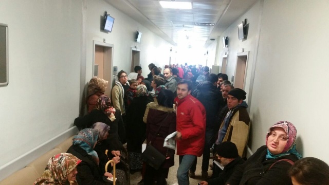 Poliklinikte koridora bakin tam 200 kişi var burada bir izdiham olsa ne olur acaba Düzce Devlet Hastanesini yapan arkadaşlar bu koridoru daha geniş yapamazmıydı.