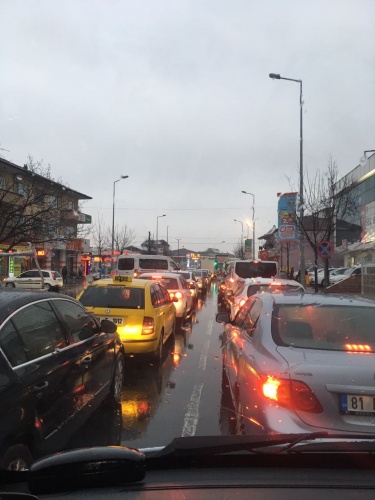 As taksi yolundaki bitmek bilmeyen trafik çilesi...