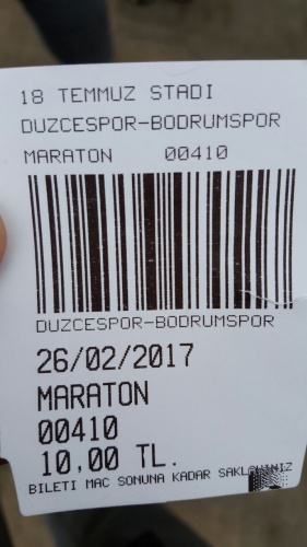 Düzcespor-Bodrumspor maçına maraton tribününden bilet aldık. Maça 15 dk geç geldik, kapasite doldu diye stada almadılar. Görevliler yüzümüze bile bakmadı. Düzce'nin ve özellikle Düzcespor yönetiminin rezaleti! Kapasiteden fazla bilet çıkararak halkın parasını alıp sonra biletli seyirciyi stada almıyorlar. Bu vatandaşın hakkının hesabını nasıl verecekler.