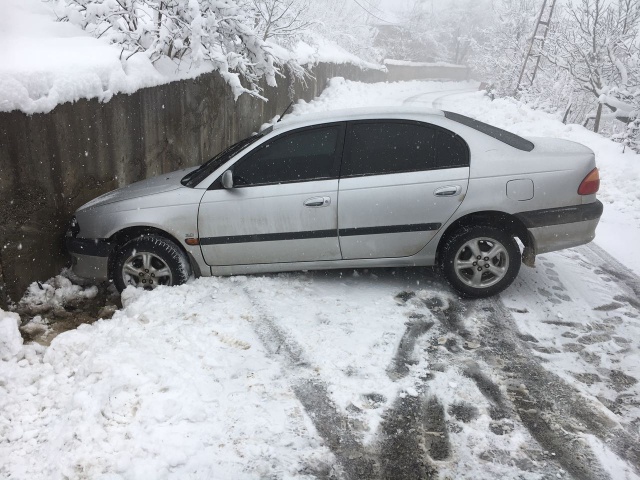 Ballar mahallesinde kar nedeni ile aracın hakimiyetini kaybeden sürücü yoldan çıktı.
