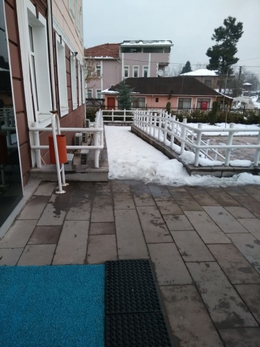 Çilimli Kaymakamlığı engelli rampası temizlenmeyi bekliyor.