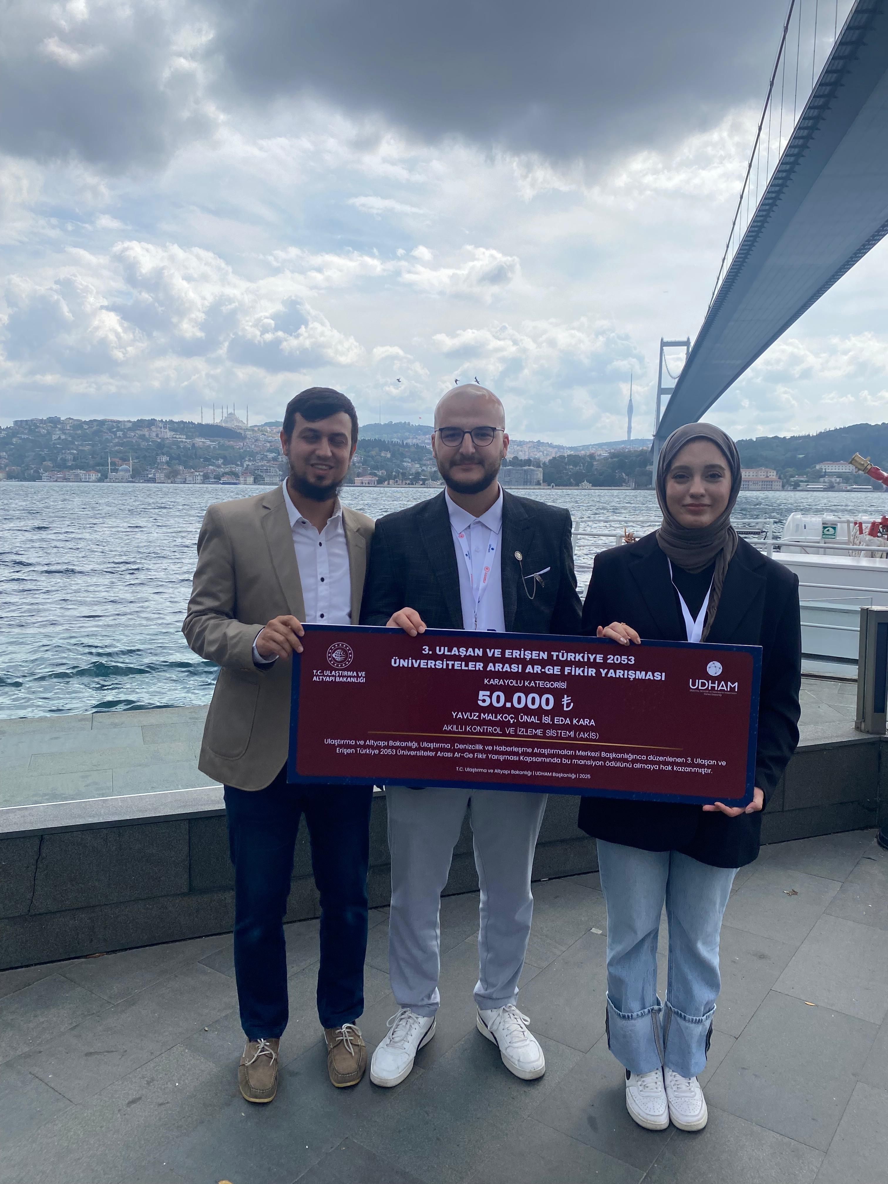 Mühendislik Fakültesi Öğretim Üyesi Doç. Dr. M. Enes Bayrakdar danışmanlığında hazırlanan "Akıllı Kontrol ve İzleme Sistemi (AKİS)" adlı projeleriyle, öğrenciler Yavuz Malkoç, Ünal İsi ve Eda Kara, Karayolu Sektörü Özel Ödülü kategorisinde mansiyon almaya hak kazandı.