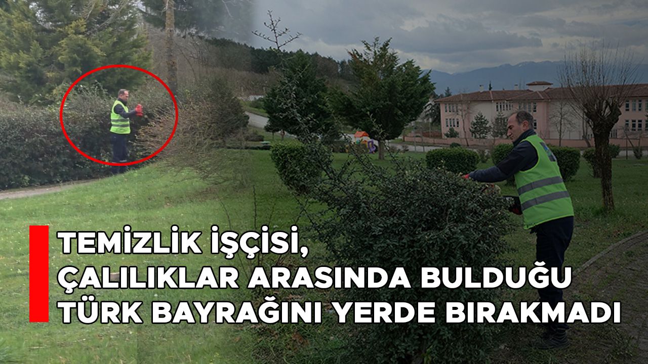 Bahçeşehir bölgesindeki yeşil alanlarda ağaç budama ve çevre düzenlemesi yapan Rıdvan Özçelikoğlu, mesaisi sırasında çalılıkların arasına takılmış bir Türk bayrağı fark etti.