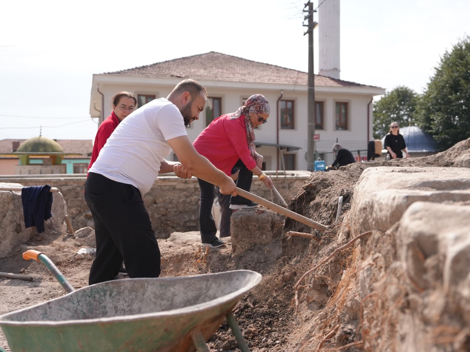 Düzce Belediyesi’nin personel ve lojistik desteği sayesinde kısa sürede tarih mirasına kazandırılan Konuralp Antik Tiyatro’sunda kazıların tamamlanmasına günler kalırken gönüllü destekler de sürüyor. Düzce Belediyesi birimlerinin sahiplendiği çalışmalara her hafta sonunda gönüllü destek olan çalışanlar bu hafta Sosyal Yardım İşleri Müdürlüğü personelleri oldu. Tarihi bir çalışmaya destek için hafta tatillerini Konuralp’e ayıran Düzce Belediyesi çalışanları tarihi mekanda başlayacak restorasyon işlemi öncesinde kazılara destek vererek bölgenin turizme kazandırılmasına katkıda bulundu.