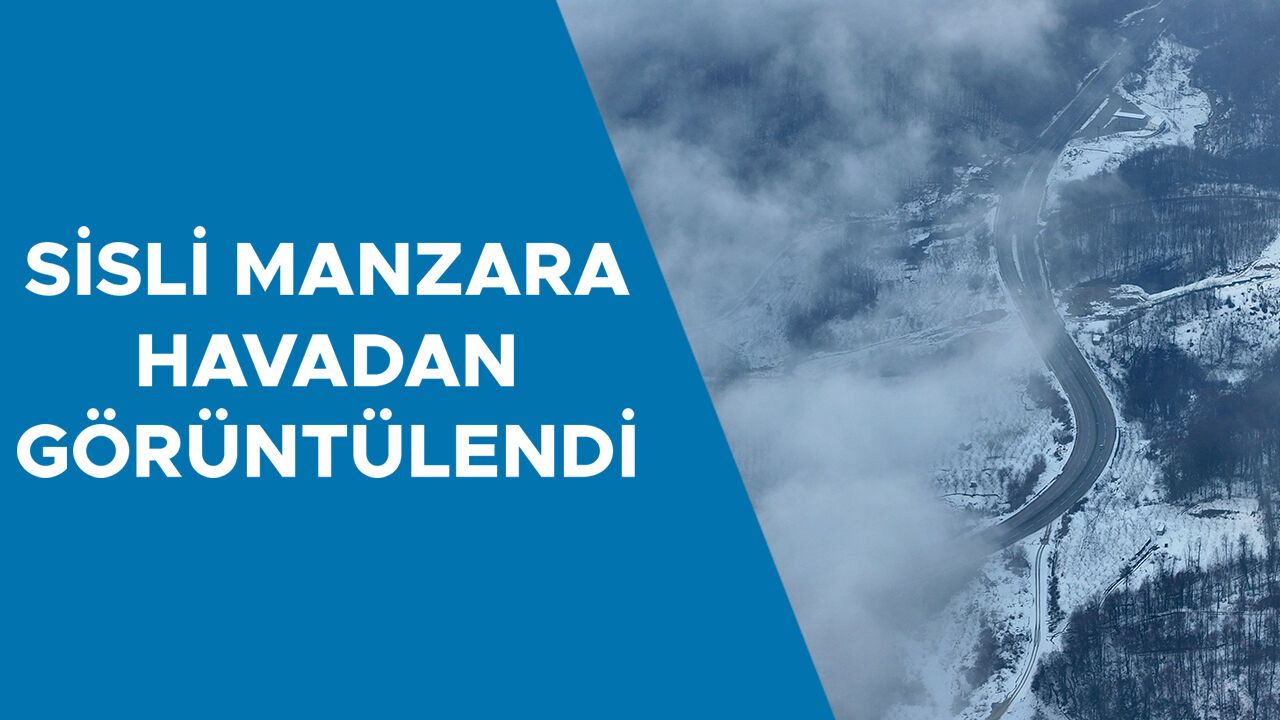 Dik rampaların yanı sıra keskin virajların da bulduğu 34 kilometrelik D-655 Düzce-Zonguldak Batı Karadeniz bağlantı yolunun Akçakoca kesiminde etkili olan sis ve yamaçları kaplayan kar havadan görüntülendi.