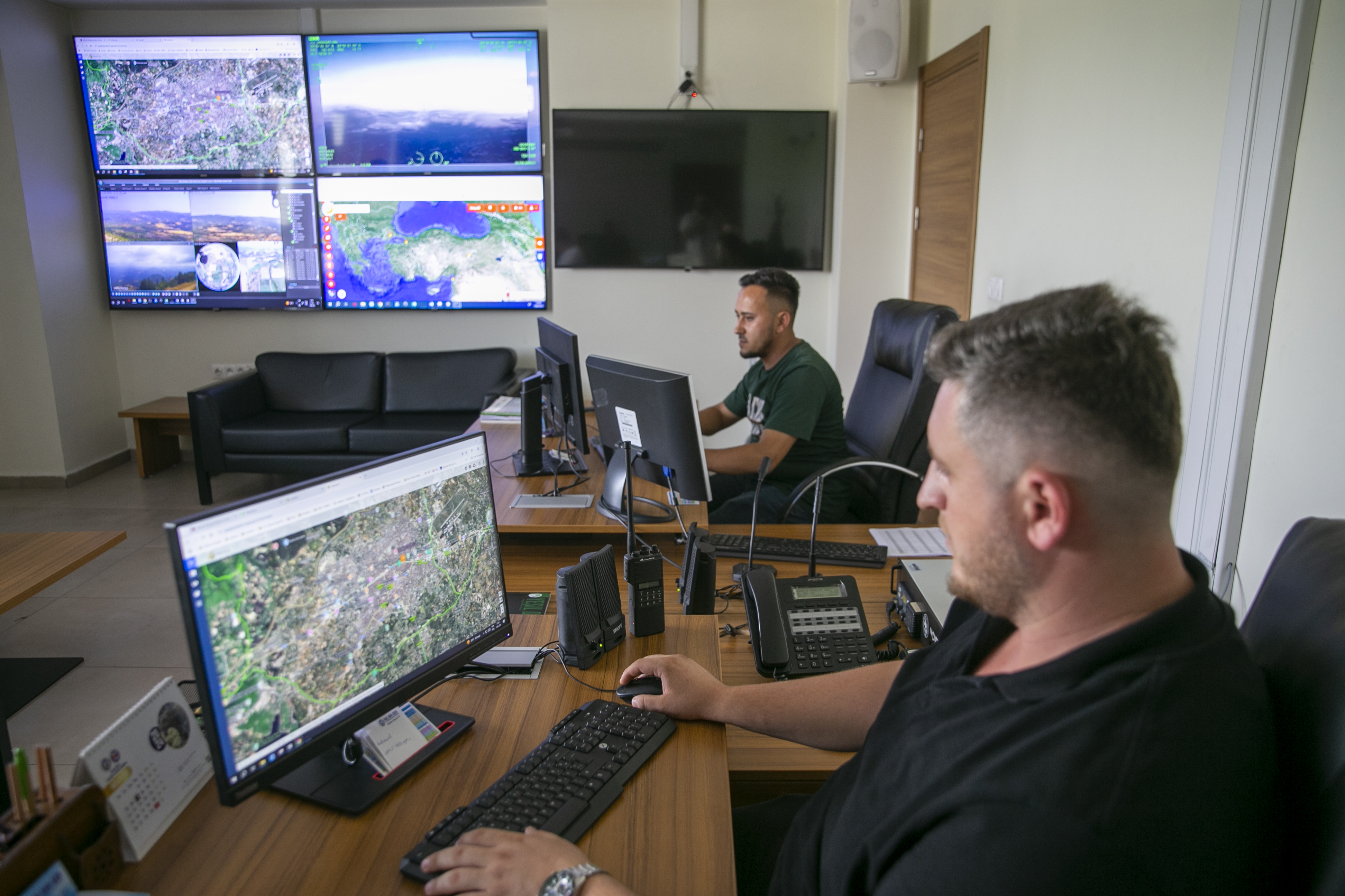 "Teknolojinin avantajı orman yangınları açısından çok büyük. Ciddi anlamda teknolojiyi kullanıyoruz." diyen Turalı, Yangın Harekat Merkezi'nde bulunan 4 ana ekranda araçların konumlarını, İHA'lardan gelen görüntüleri, yangın gözetleme kuleleri ile yangına müdahale eden helikopterlerin kameralarından aktarılan görüntüleri takip ettiklerini anlattı.