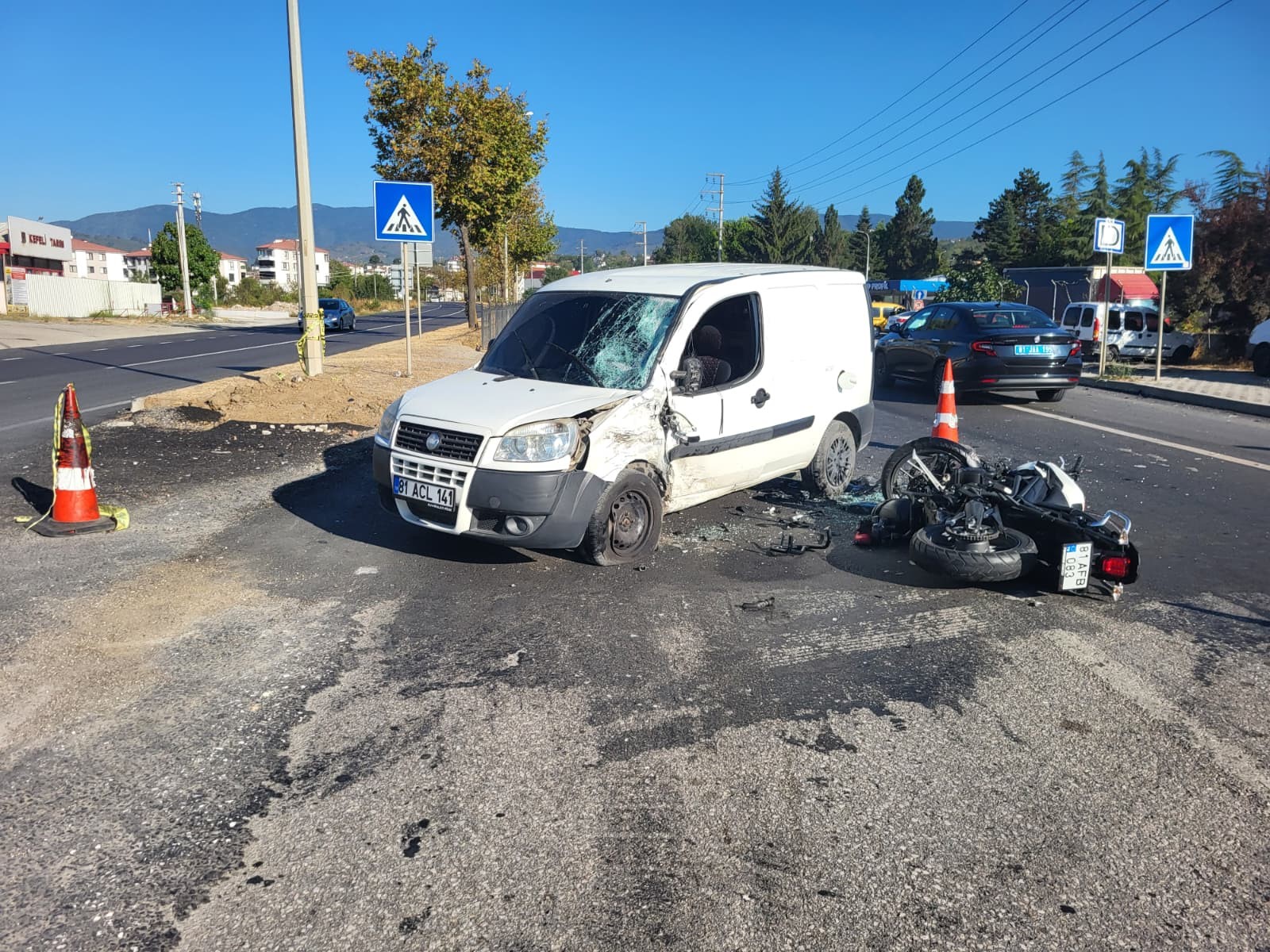Kaza, sabah saatlerinde D-655 Düzce–Akçakoca kara yolu üzerindeki Şehit Murat Demir Mahallesi mevkisinde meydana geldi. Edinilen bilgilere göre, 81 ACL 141 plakalı hafif ticari araç ile 81 AFB 083 plakalı motosiklet çarpıştı. Çarpışmanın etkisiyle motosiklet sürücüsü 25 yaşındaki A.K. ağır yaralandı.