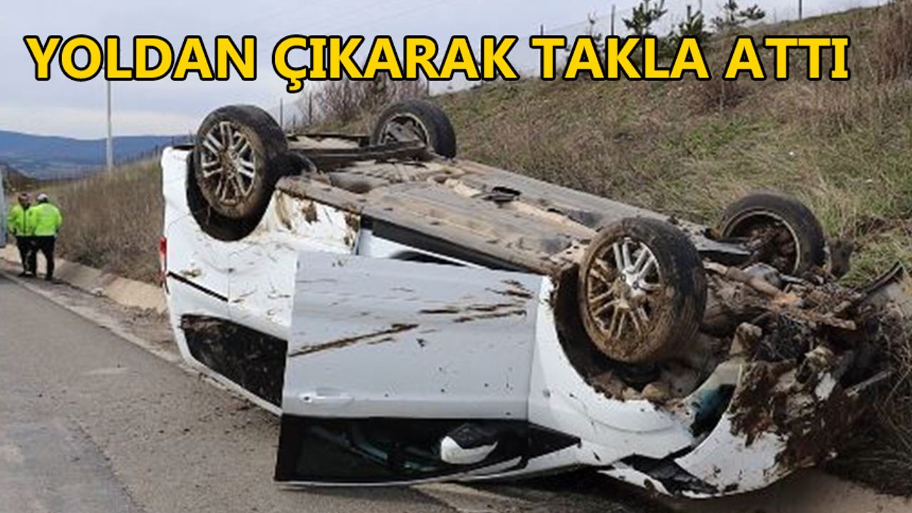 Kaza Anadolu Otoyolu Bolu kesiminde meydana geldi Alınan bilgilere göre, Ankara’dan İstanbul istikametine seyreden Yalçın Ç. idaresindeki 34 GLR 753 plakalı hafif ticari araç sürücünün direksiyon hakimiyetini kaybetmesi sonucu Yeniçağa mevkisinde yoldan çıkarak takla attı.