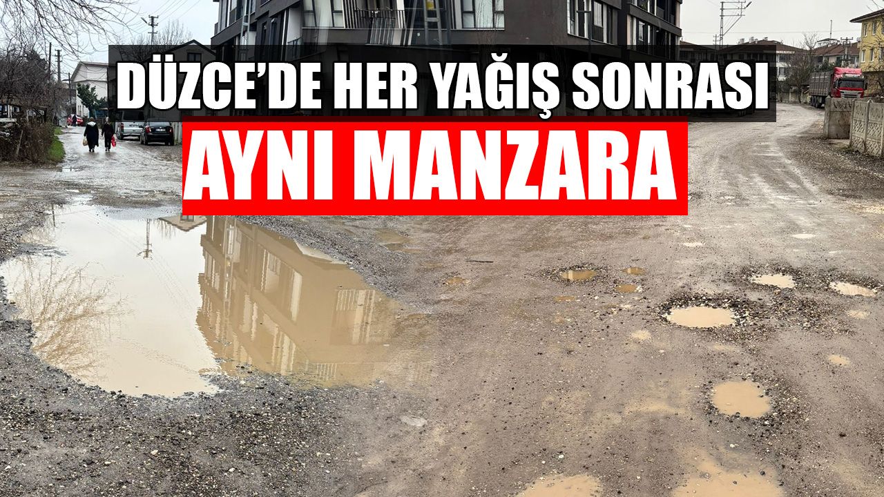 Düzce’de her yağış sonrası ortaya çıkan bozuk yol ve altyapı sorunu derinleşmeye devam ediyor. Hamidiye Mahallesi 1208. Sokak üzerinde adeta köstebek yuvasına dönen yol, durumun geldiği boyutu gözler önüne serdi.