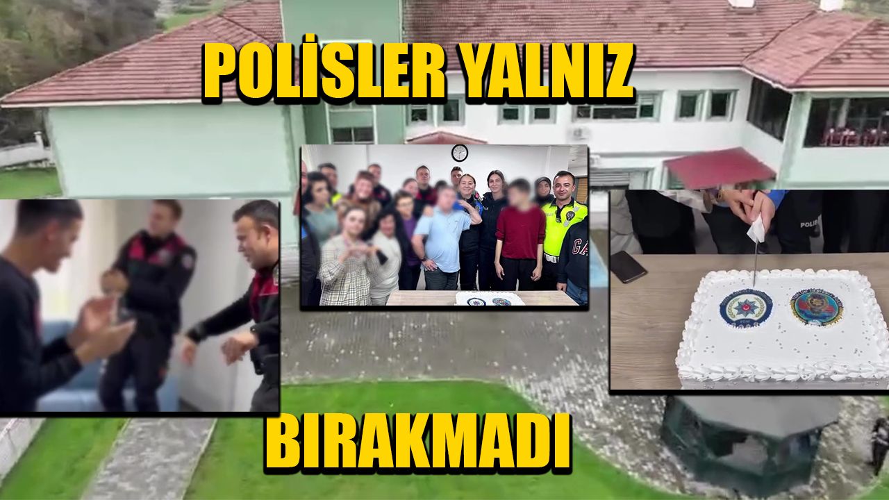 Birlikte pasta kesen polisler ve özel bireyler, günün anısına toplu fotoğraf çektirmeyi de ihmal etmedi.
