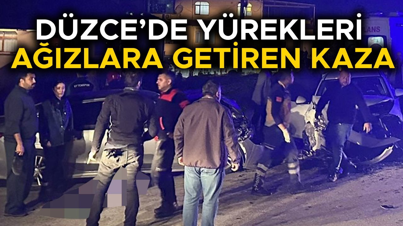 Kaza, gece saatlerinde Gölyaka İlçesi Yazpınar Mahallesi mevkisin de meydana geldi. Alınan bilgilere göre, Ç.B. idaresindeki 34 SK 7143 plakalı otomobil, Yazıpınar Mahallesi mevkisinde Y.E'nin kullandığı 07 AVD 397 plakalı otomobil ile çarpıştı.