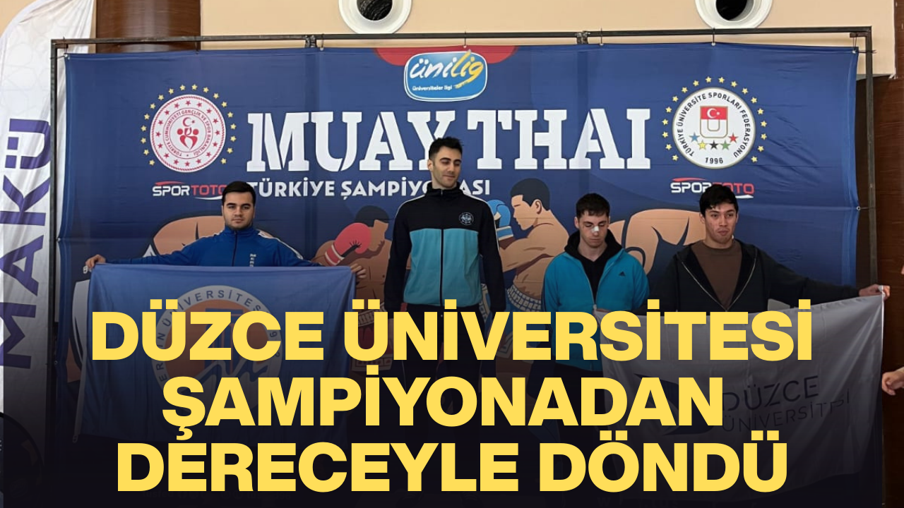 Türkiye Üniversite Sporları Federasyonu tarafından, Burdur Mehmet Akif Ersoy Üniversitesi ev sahipliğinde düzenlenen Üniversiteler Arası Muay Thai Türkiye Şampiyonası’na, Türkiye genelinden 60 üniversite ve toplam 240 sporcu katıldı. Düzce Üniversitesi’ni başarıyla temsil eden öğrencisi Ilyar Aisayev, zorlu ve çekişmeli mücadelenin ardından, B Division kategorisi 86 kilogramda Türkiye üçüncüsü olarak önemli bir derece elde etti.