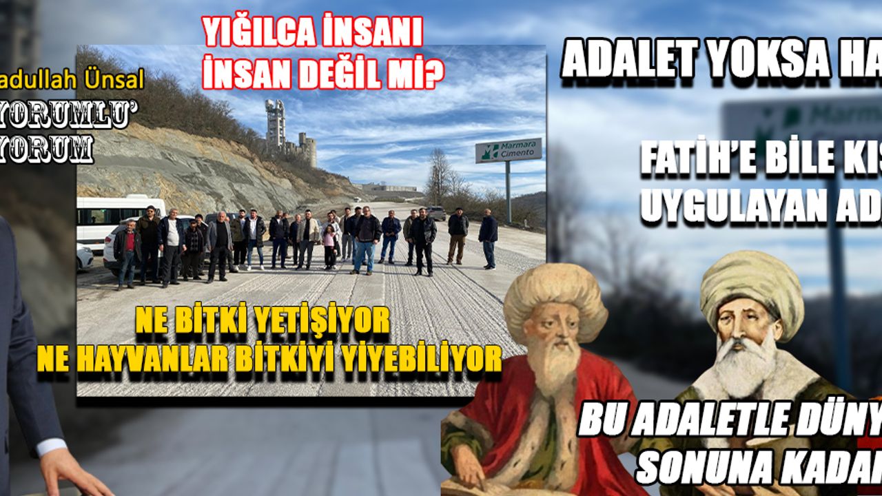 Bu insanlara zulmetmeyin. Benim dediğimle de yarın sabah orası düzelecek diye bir kaide yok. Her şehre girdiğinizde, her hayata baktığınızda ölüm var. İdarecilerin, yetkililerin ölümü unutmaması lazım. Yığılca’nın bu zulümden kurtulması lazım. Burası Yığılca Çimento, Düzce Çimento diye gündemdeydi, bizi insan yerine koymadılar. Marmara Çimento dediler. Düzce Çimento bunlara ufak geldi. Düzce'yi toza, toprağa, sıkıntıya sok, ismimiz bile olmasın. Hayırlı işler.