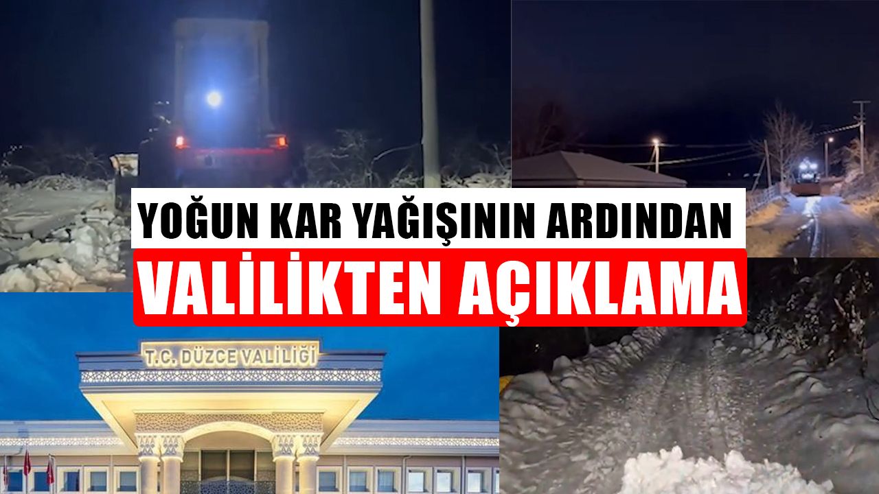 “1 Ocak 2026 Saat 21:00 itibarıyla; Vilayetimiz genelinde etkili olan yoğun kar yağışı ve buzlanma dolayısıyla güvenlik, ulaşım ve diğer kamu hizmetlerinin aksamaması için İl Özel İdaresi, Düzce Belediyesi ve ilçe belediyeleri, Karayolları, Jandarma, Emniyet, Sağlık ve SEDAŞ ekiplerimiz görev başında.
