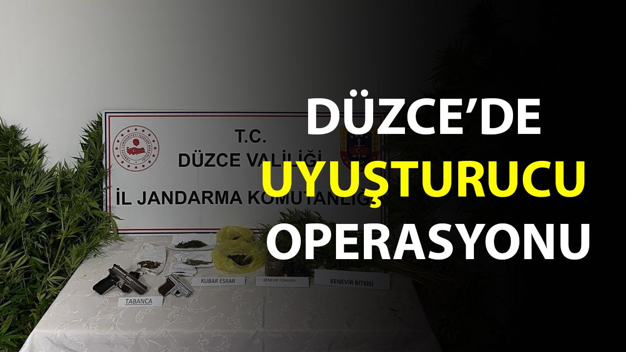 Düzce Cumhuriyet Başsavcılığı koordinesinde İl Jandarma Komutanlığı ekipleri tarafından uyuşturucu madde imal ve ticaretinin önlenmesine yönelik yürütülen çalışmalar kapsamında Merkez ilçesinde belirlenen adreslere operasyon düzenlendi. İstihbarat, KOM ve Narkotik Suçlarla Mücadele Şube müdürlüklerinin de katılımıyla gerçekleştirilen aramalarda, M.C.K., R.K. ve K.K. isimli şahısların ev ve bahçelerinde uyuşturucu madde ile silah ele geçirildi.