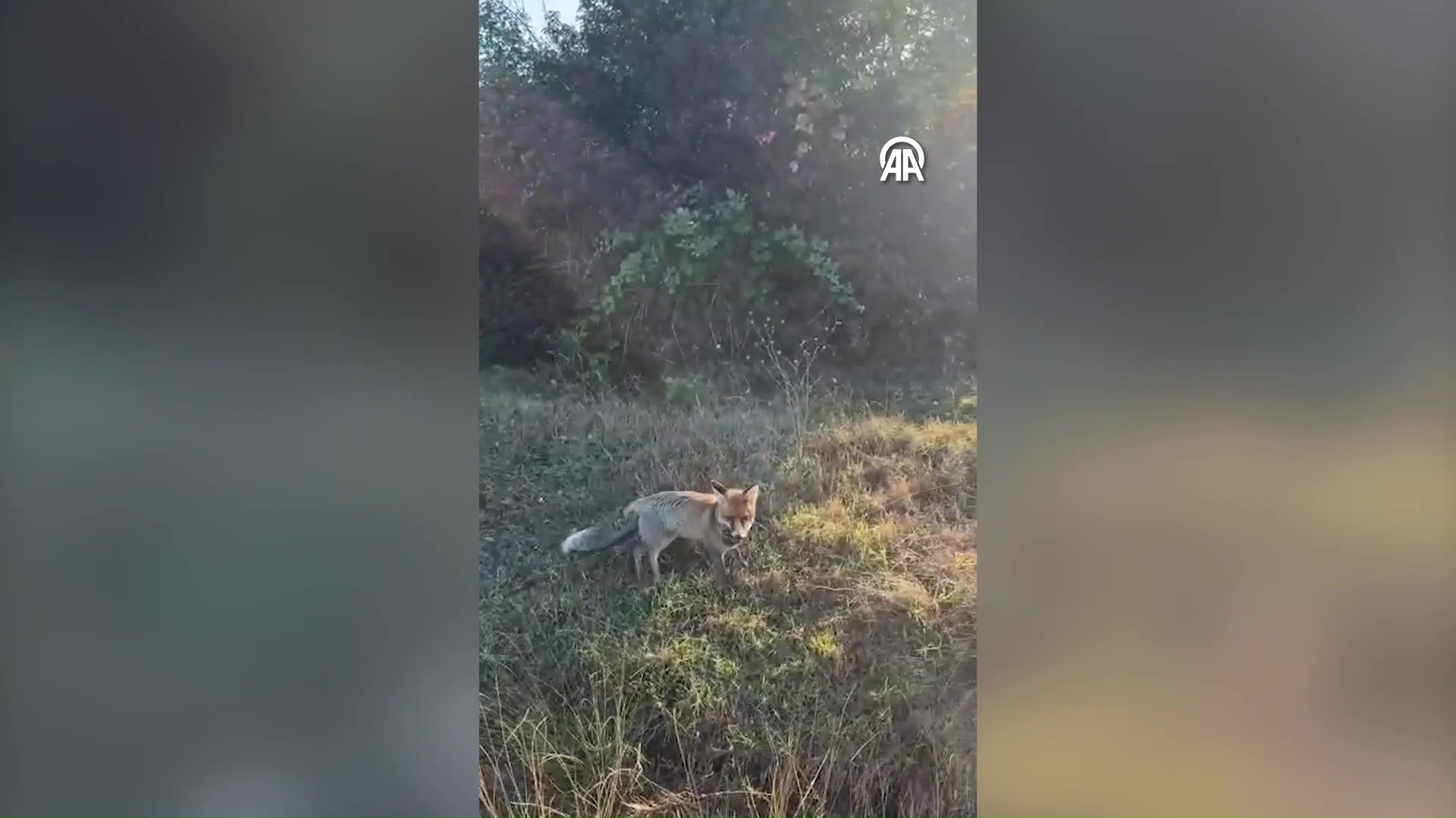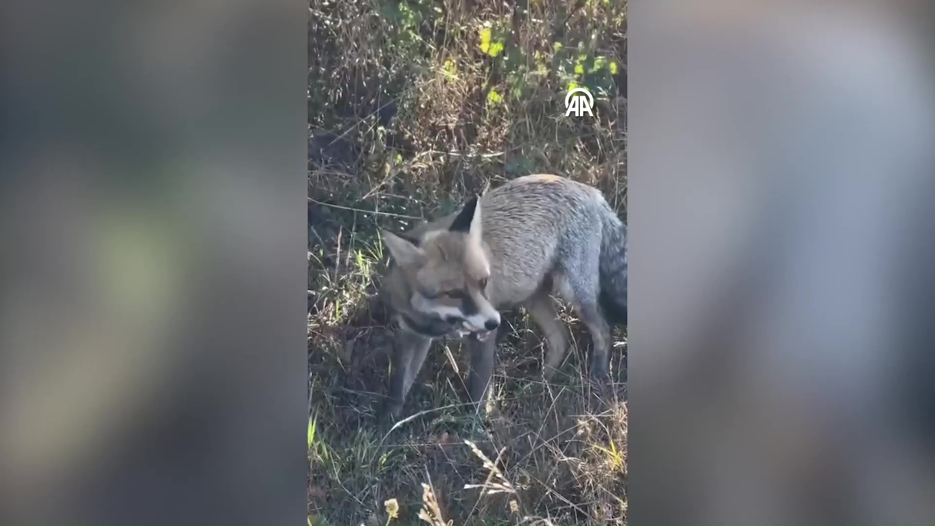 Bolu'da aç kalan tilkiyi vatandaş besledi.