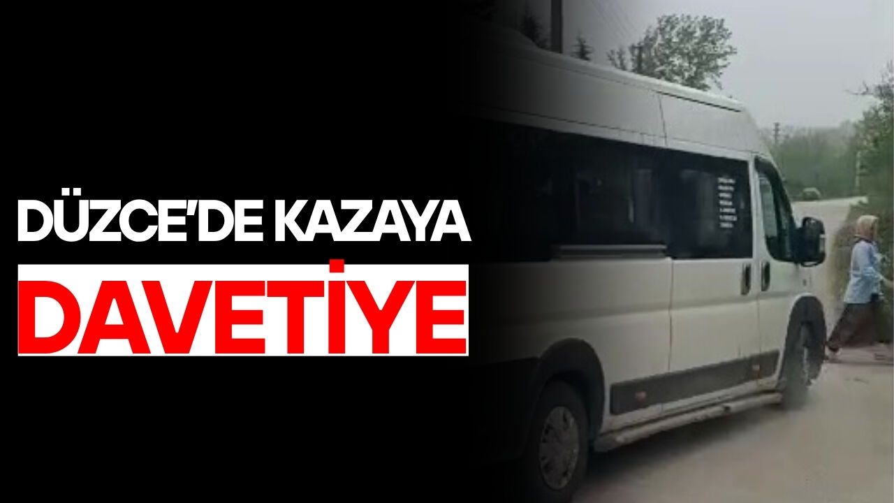 Kutlu Köyü’nden Düzce şehir merkezine yolcu taşıyan içinde yolcuların da bulunduğu 81 AEK 049 Plakalı minibüs, Kutlu Köyü çıkışında virajı geniş almaya çalıştı. Bu sırada yolun karşısına geçmeye çalışan kadın minibüsün önünden son anda kaçtı.