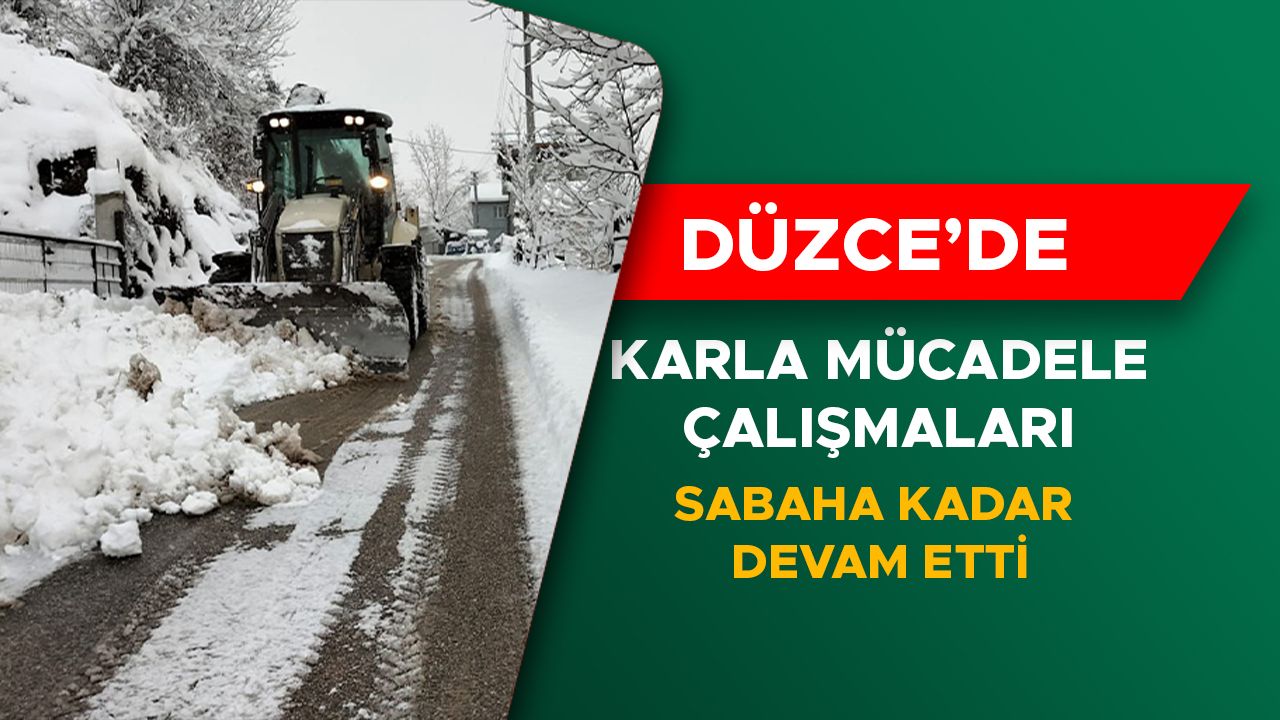 Sabahın ilk ışıklarına kadar karla mücadele çalışmalarına devam eden Düzce İl Özel İdaresi ekiplerinin köy yollarında kar küreme ve tuzlama çalışmalarına devam ettiği bildirildi.