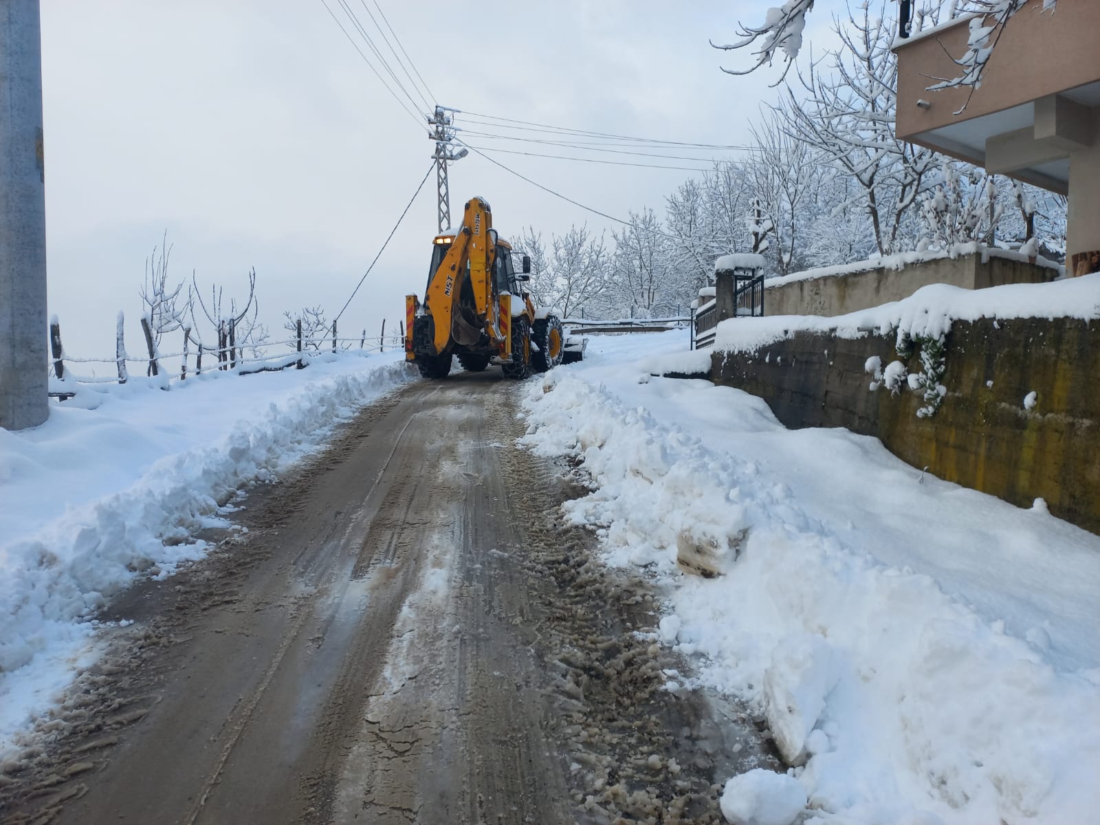 Düzce İl Özel İdaresi ekipleri, kar yağışı nedeniyle kapanan köy yollarında önceliği cenaze olan köylere verdi.