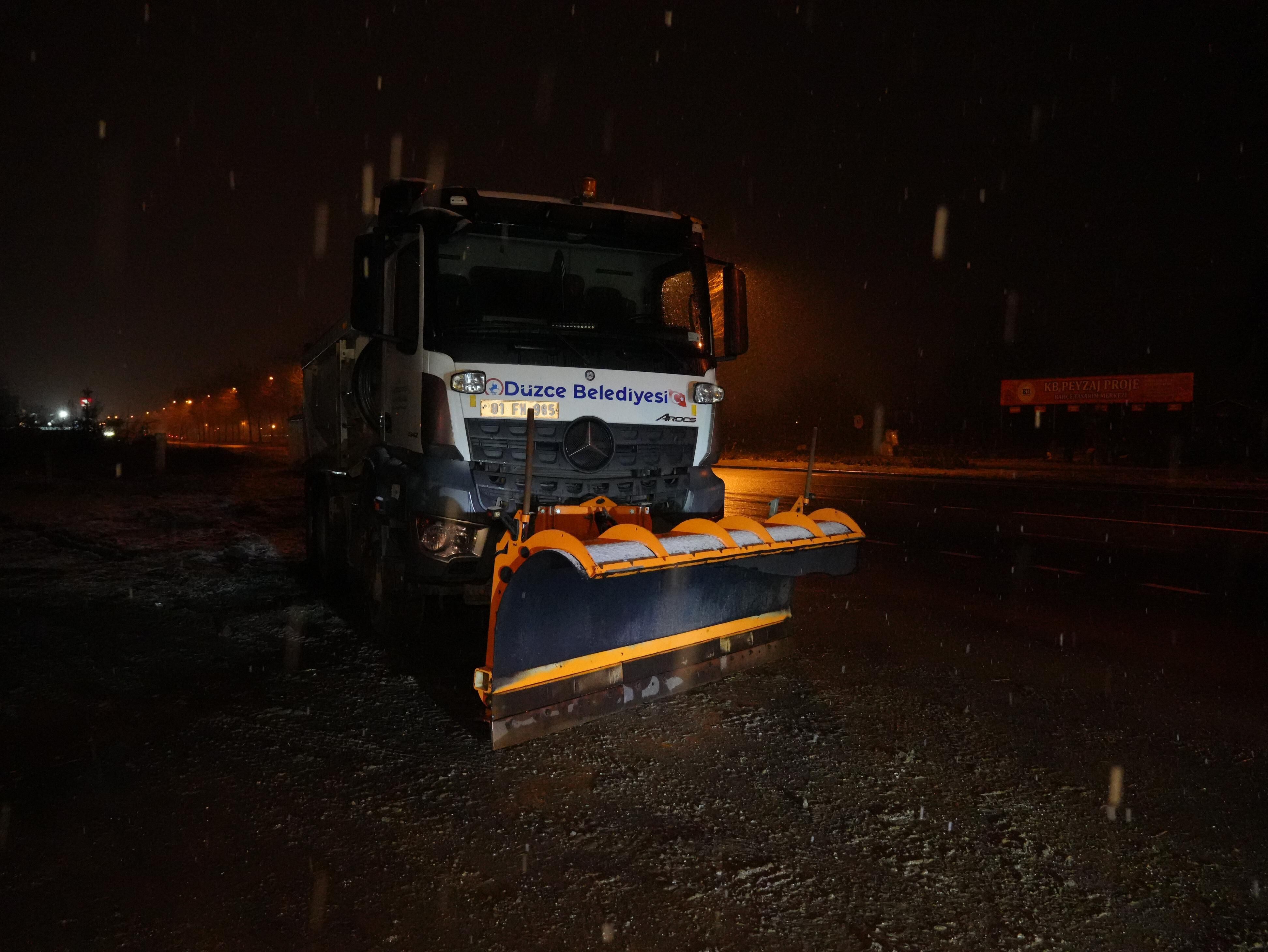 Düzce’yi etkisi altına alan ve akşam saatlerinde şiddetini arttıran kar yağışı nedeniyle, meteorolojinin uyarıları ile birlikte günler öncesinden hazırlıklarını tamamlayan Düzce Belediyesi, İl Özel İdaresi ile Karayolları ekipleri, kar küreme ve tuzlama çalışması başlattı.