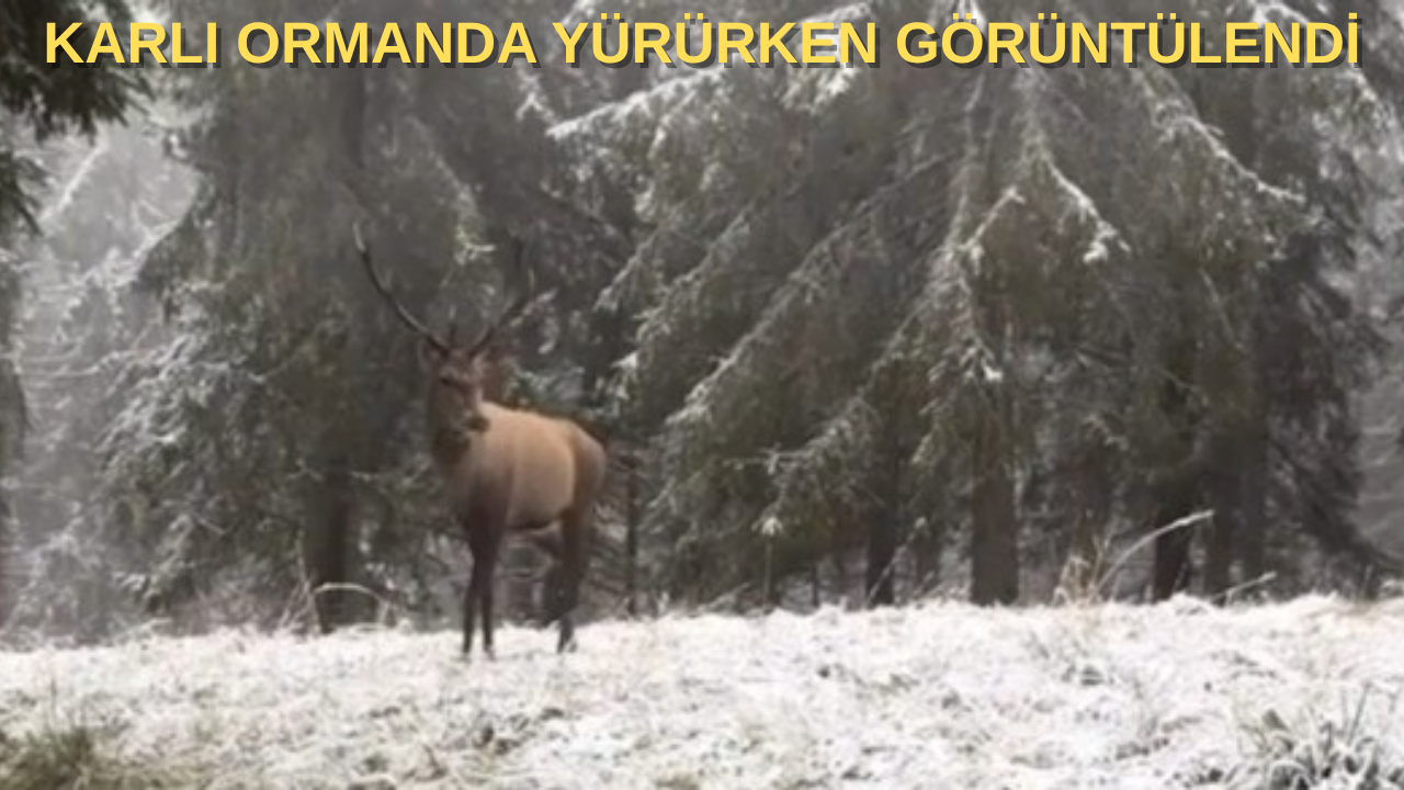 Bolu'nun yüksek kesimlerinde karla kaplanan ormanlık alanda yürüyen kızıl geyik, cep telefonu kamerasıyla kaydedildi.