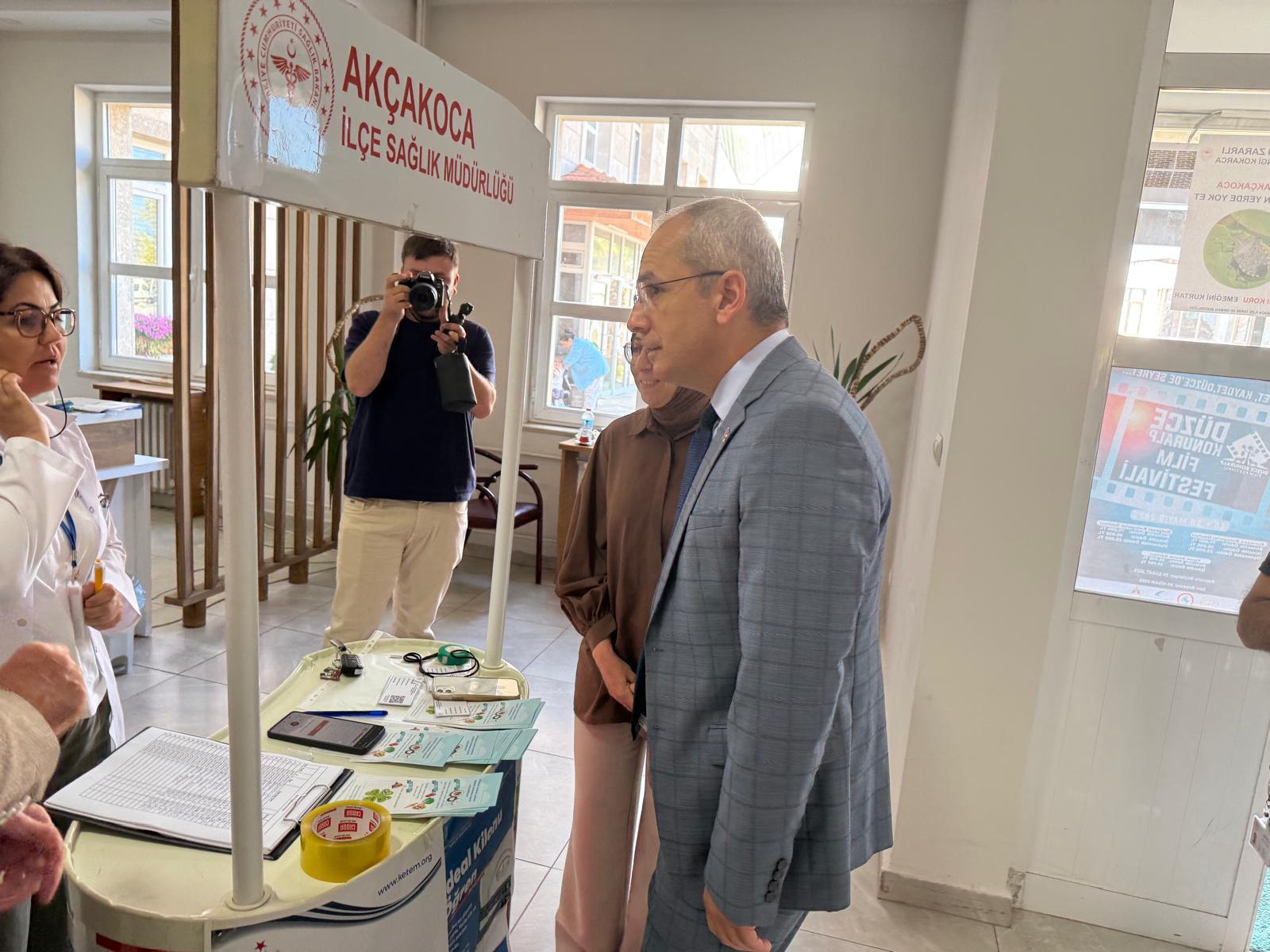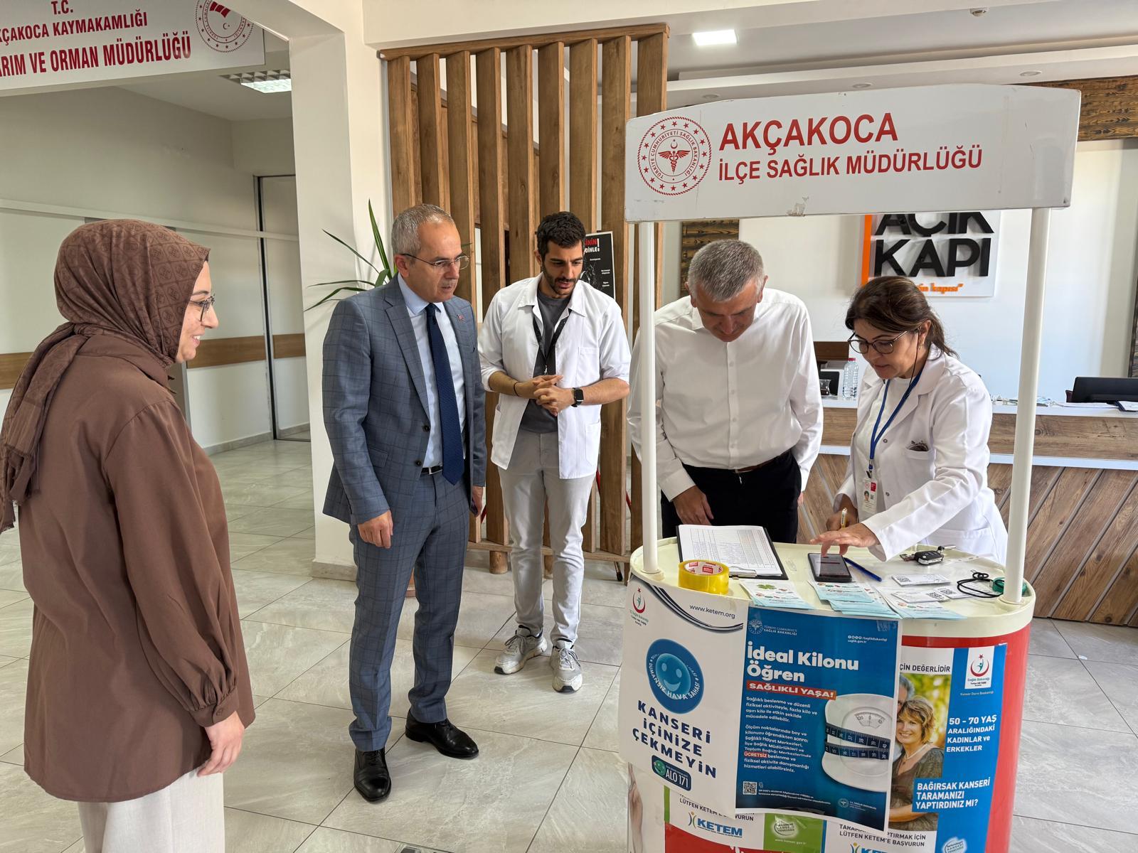 Etkinlik kapsamında, Akçakoca Kaymakamlığı’nda açılan stantta kurum amirleri ve personellere ölçümler gerçekleştirildi. Kaymakam Deniz Pişkin ve Akçakoca Belediye Başkanı Fikret Albayrak da İlçe Sağlık Müdürlüğü’nün Akçakoca Kaymakamlığı’nda kurduğu standı ziyaret ederek görevli personellere çalışmalarında başarılar diledi.