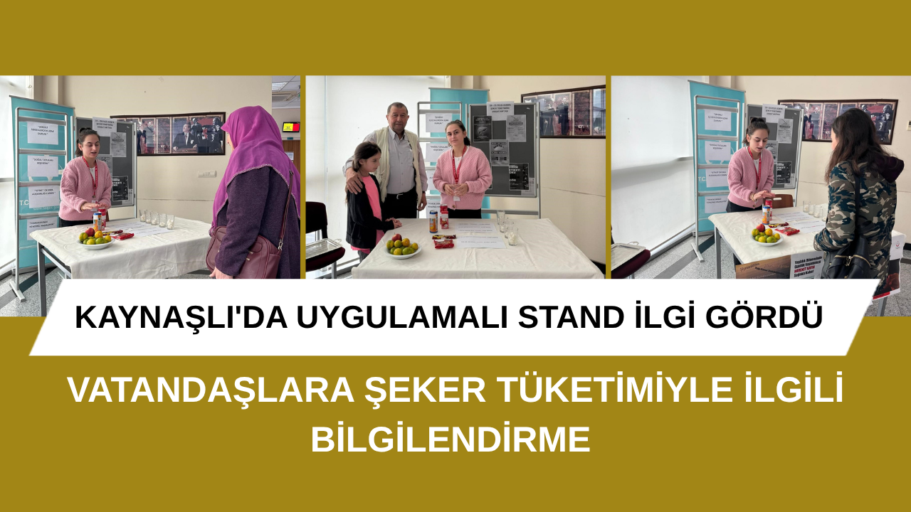 Kaynaşlı Toplum Sağlığı Merkezi ve Kaynaşlı Devlet Hastanesi iş birliğinde hastane içerisinde uygulamalı bir stant açtı. Stant üzerine konulan asitli içecekler, meyve ve şekerli ürünler ile vatandaşlara detaylı bilgilendirmelerde bulunuldu. Şeker tüketiminin sınırlandırılması, sağlıklı ve dengeli beslenmenin temel unsurlarını uygulamalı bir şekilde aktaran ekipler asitli içecekler ve çikolata bazlı gofretlerin şeker hastalığında etkili olduğu belirtildi.