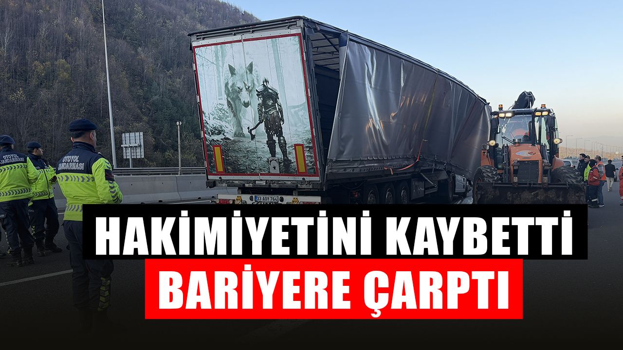Otoyolda Düzce istikametine seyreden S.Ö. idaresindeki gazlı içecek taşıyan 33 PL 500 plakalı tır, 2. viyadük üzerinde sürücünün direksiyon hakimiyetini kaybetmesi sonucu bariyere çarparak yola savruldu.