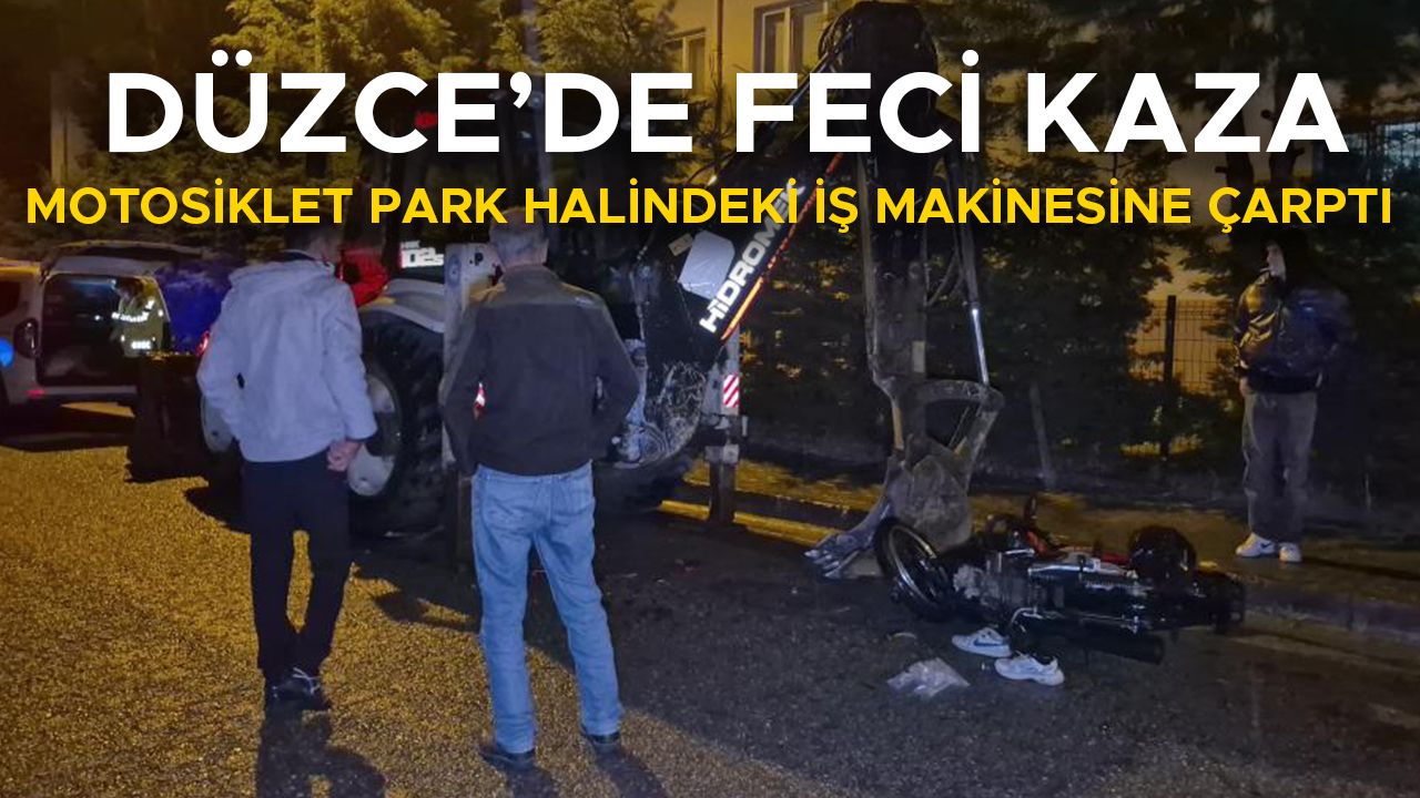Edinilen bilgilere göre, Murat Can Y. idaresindeki 81 ACF 864 motosiklet ile evine giderken sağanak yağış nedeniyle görüş mesafesi düşünce park halindeki yaklaşık 10 tonluk iş makinesini fark etmeyerek arkadan çarptı.