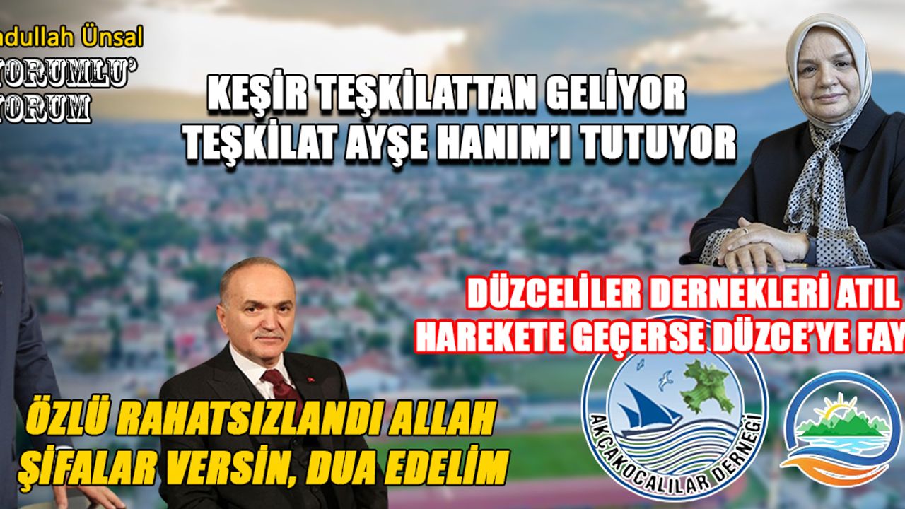 Sayın Belediye Başkanımız Faruk Özlü iki günden beri tedavi görüyor. Allah Şafi ismiyle şifa versin. Memlekete hayırlı hizmetlerinin devamını nasip etsin. Ben buradan tüm dinleyicilerimize Faruk Özlü için ‘Geçmiş olsun’ dileğinde bulunmasını ve duasını etmesini istiyorum. Allah şifa versin. Ayşe Keşir inşallah bakan olur, Düzce’den bir bakan daha çıkar. Bizim yazmamızla bakan olmaz, yazmamamızla da bakan olmaz. Ama Düzce'nin Ayşe Keşir beklentisini dillendirmesi yüzde 1 etki olsa iyidir. Düzce kamuoyu ve basını olarak Düzce siyasetini, Düzce'den bir bakan daha olması için dillendirmemizde fayda var.