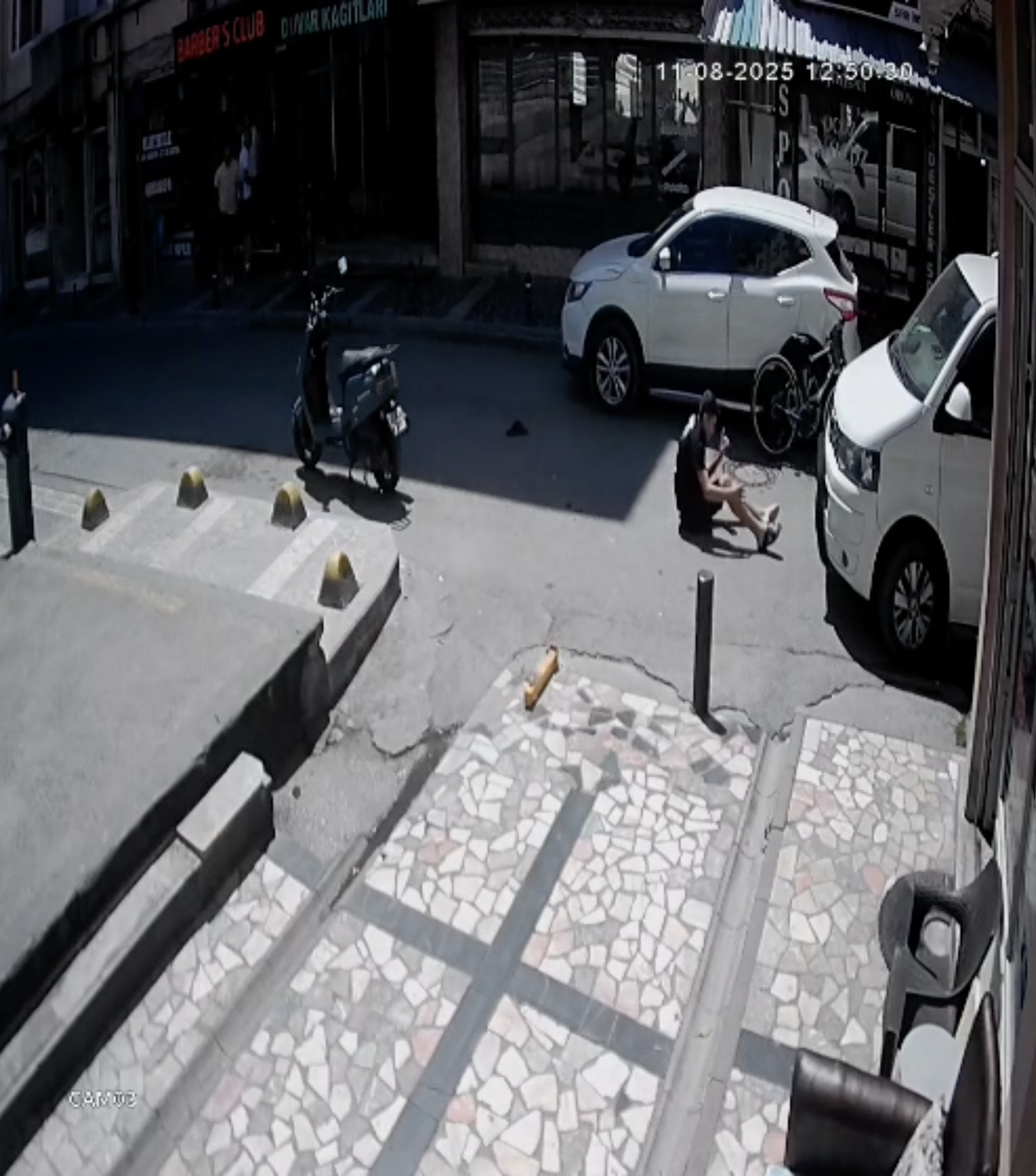Öte yandan kaza anı, bir işyerine ait güvenlik kamerası tarafından anbean görüntülendi.
