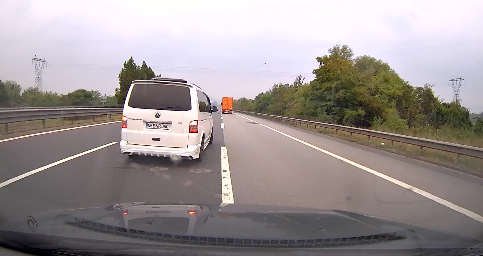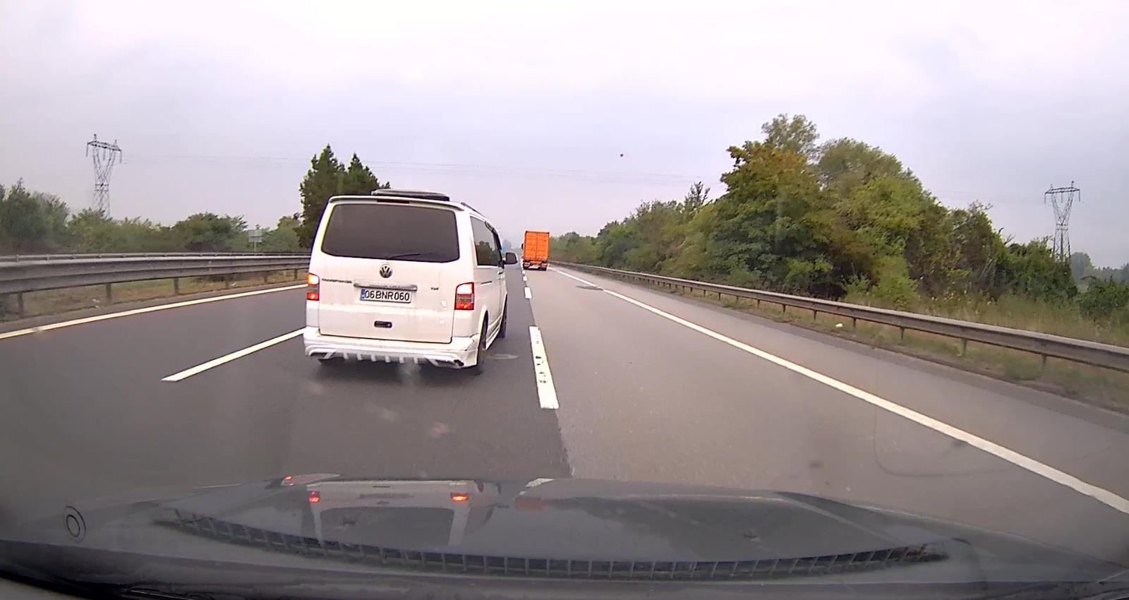 Trafik magandasının otomobil sürücüsünü ve diğer otoyolu kullanan sürücülerin hayatını tehlikeye attığı anlar ise takip ettiği otomobilin araç kamerasına an ve an yansıdı.