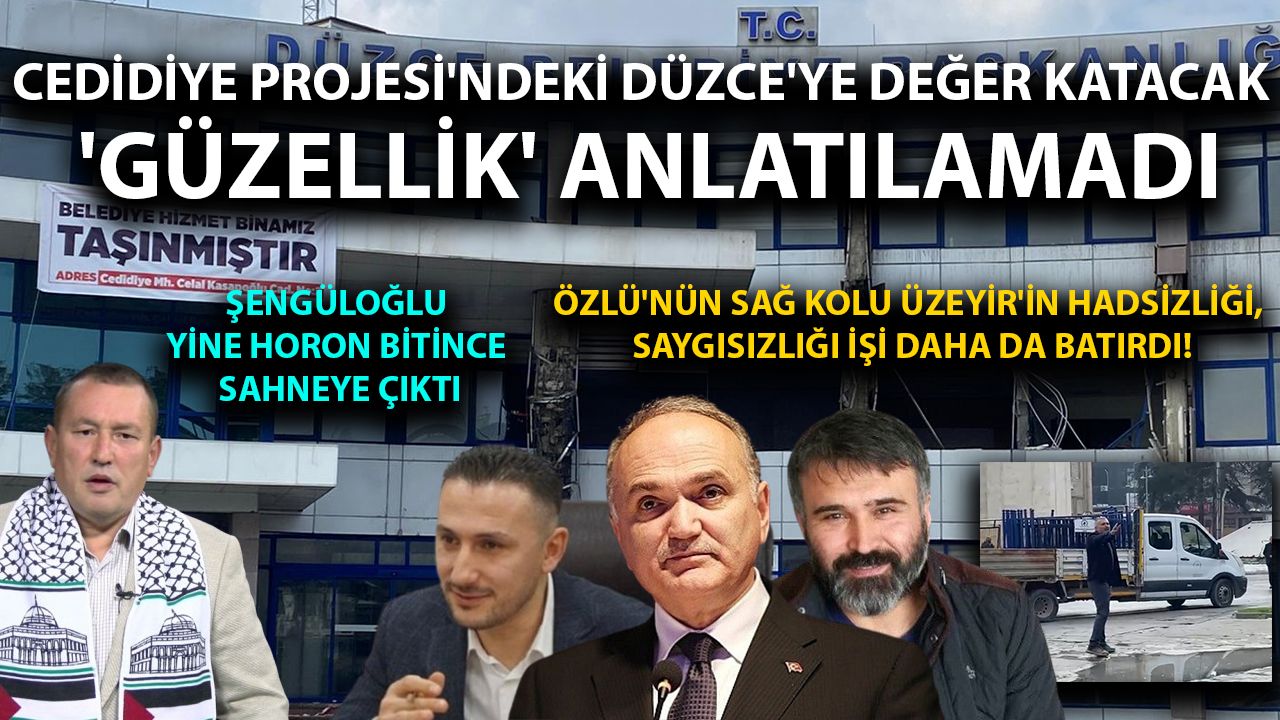 “O ahbap çavuş ilişkisi biter. Ahbap çavuş ilişkisi kurduğunuz insanlar şu anda arkanızda dolaşıyor ey Zübeyir, değil mi? Bunu sen çok iyi biliyorsun. Fotoğraflar veriyor. Beytülmal’dan alan haramdır diyor. Şehit cenazesinin karşısında birilerine Beytülmal hırsızlığını ayetle izah ediyorlar. Kime söylediler, anlamadım tabii… Hani der ya, “Hamur çok, su getirir,” diye. Bir an önce net, somut verilerle bu işi izah edilmeli kantarla mantarla bu iş olmuyor. İl başkanının da bir açıklaması var Hasan Şengüloğlu’nun. Tabii en son yapıyor o da. Açıklamaları böyle harman dövülüyor, horon bitiyor, ondan sonra geliyor “A, böyle olmuş” diyor. “Böyle olmuş,” diyor, “böyle olmuş,” diyor. İşin başında sahip çıkmak yok. Sahaya ineceksin orada, çağıracaksın basını. Onlar çağırdılar ya, diğer muhalif noktada “Burası budur,” diyeceksin. “Biz bu işin arkasındayız,” diyeceksin. Sözlü olarak, Devlet Bahçeli gibi sürekli yazılı açıklamalarla bu iş olmaz gibi geliyor bana. İnşallah hayırlısı olur. Ben inandığımı söylüyorum ve inanıyorum da. Düzce’deki binanın, bu belediye binasının yıkılarak oranın bir geçmiş asaleti anlatan, geçmiş ruhu yansıtan bir tabloyla beraber hem orası kazanacak, hem Düzce Belediyesi yeni bir alan kazanacak, yeni bir bina kazanacak. Belki de para kazanacak bu işte. Ha Üzeyirler ne kadar olur? Küçük sanayide ne kadar olduysa, burada da o kadar olur.”